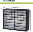 From the manufacturer Product Description The Akro-Mils 10144 44-Drawer Plastic Drawer Storage Cabinet with Drawers is a great solution for all your storage needs. This heavy-duty cabinet is made from rugged, high-impact polystyrene plastic and features 44 plastic drawers offering ample storage space for all your small parts and tools. Large drawer inside dimensions: 4-7/8-Inch x 4-1/4-Inch x 2-Inch; small drawer inside dimensions: 5-1/4-Inch x 1-11/16-Inch x 1-1/2-Inch. Whether you're looking to organize your garage, workshop, classroom, or home, this storage cabinet has you covered. Garage owners and businesses will love the versatility of this cabinet, with the plastic storage drawers perfect for use as a hardware organizer, screw organizer box, or for battery storage. Keep your nails and other small parts accessible with ease. Teachers can use the cabinet for classroom storage, as a teacher toolbox, art storage, craft storage box, for scrapbook supplies, and more. This plastic storage cabinet is also perfect for home storage and organization. Use it as a lego organizer, craft organizer, or bead storage. It's even great for makeup storage and organization or for medicine and first aid supplies. And with the ability to stack cabinets securely or wall-mount them using keyhole slots, along with finger-grip drawer pulls and rear stop tabs to prevent contents from spilling, this cabinet has everything you need to keep your items safe and organized. Cabinets have 8 small crosswise dividers and 4 large length dividers included. Included dividers are molded into the back of the cabinet (remove with scissors).