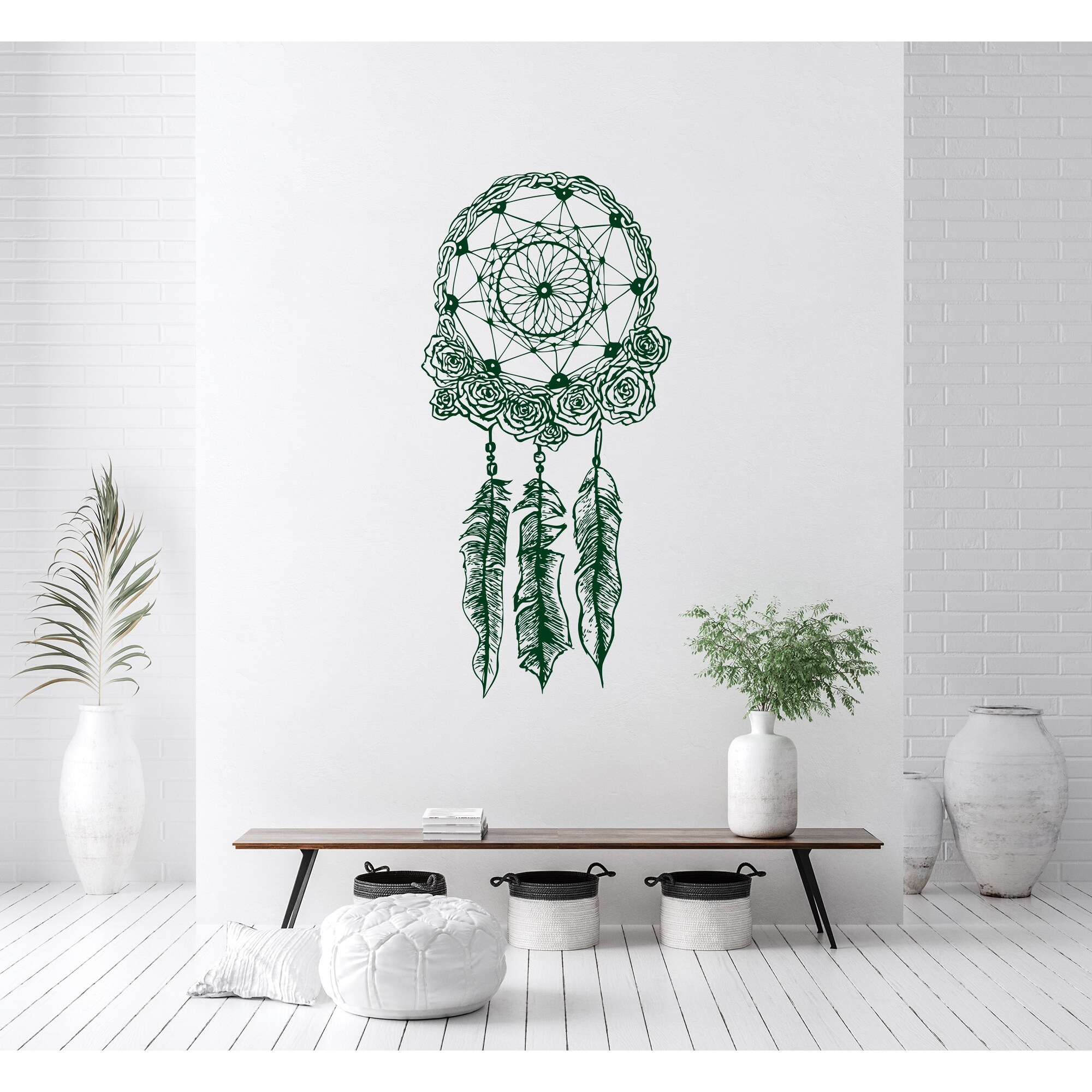 Dream Catcher Wall Decal Vinyl Sticker Decals Feather Boho Bedding Decor Native American Dreamcatcher Decal Stickers Bohemian BedroomHere you can find all kinds of wall decal creations suitable for you living room, bedroom, nursery room, office you name it, if it's a flat surface, it will stick to it. ABOUT OUR DECALS: Our High Quality wall decals art are proudly made in the USA. We use High Quality Vinyl material and high quality inks, safe for you and your children. Decals can be used for interior and exterior purposes. The sticker's color will stay vibrant and beautiful for many years of enjoyment. Decals are easy to remove but they are not reusable. APPLICATION OF DECALS: Must be applied on a flat, dry, clean, smooth surface. Can be applied on walls, furniture, glass, Free Shipping Over $49.99* Details Dream Catcher Wall Decal Vinyl Sticker Decals Product Description: Dream Catcher Wall Decal Vinyl Sticker Decals Feather Boho Bedding Decor Native American Dreamcatcher Decal Stickers Bohemian Bedroom Here you can find all kinds of wall decal creations suitable for you living room, bedroom, nursery room, office you name it, if it's a flat surface, it will stick to it. ABOUT OUR DECALS Our High Quality wall decals art are proudly made in the USA. We use High Quality Vinyl material and high quality inks, safe for you and your children. Decals can be used for interior and exterior purposes. The sticker's color will stay vibrant and beautiful for many years of enjoyment. Decals are easy to remove but they are not reusable. APPLICATION OF DECALS: Must be applied on a flat, dry, clean, smooth surface. Can be applied on walls, furniture, glass, floor, wood or any other smooth and clean surface. Can not be applied on concrete or textured surface. If you want to apply sticker on floor, lamination is required Are not recommended for application over paints advertised as being stain-resistant or washable (like acrylic, latex etc). These paints are crafted to prevent things from sticking including vinyl decals. If your wall has been recently painted, wait at least 4 - 8 weeks before applying your decal. Step by step instructions are included with your purchase. For large sizes two people are recommended for installation of the wall decal. COLOR AND COLOR INFORMATION The color of the printed motifs may differ slightly from the color of the screen, depending on screen configuration. Colors look different on different monitors, please purchase a sample if you do really concern the colors and quality. Picture may not reflect true size. It can be bigger for showing purpose. It helps you to watch all details.