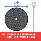Dremel 426 Reinforced Cut-Off Wheels - 5pc Dremel 426 Reinforced Cut-Off Wheels 5 piece package 1 1/4 inch diameter cut-off wheels 1/16 inch hole Use with 1/16 inch screw mandrel; not included Ideal for cutting, grooving and trimming all kinds of metal May also be used on thin wood, plastics and ceramics Easily cut bolts or screws Make slots in rusted or stripped bolts and screws for removal with a screwdriver For use with Dremel and other rotary tools Dremel 426 Reinforced Cut-Off Wheels - 5pc Dremel 426 Reinforced Cut-Off Wheels 5 piece package 1 1/4 inch diameter cut-off wheels 1/16 inch hole Use with 1/16 inch screw mandrel; not included Ideal for cutting, grooving and trimming all kinds of metal May also be uséd on thin wood, plastics and ceramics Easily cut bolts or screws Make slots in rusted or stripped bolts and screws for removal with a screwdriver For use with Dremel and other rotary tools × × × × × × × × × Buy now and save! Shipping info Click the Shipping & Payments tab above the listing description for more info Click the Shipping & Payments tab above the listing description for more info! Additional delivery notes PICK UP OPTION Sorry, our items are NOT available for pick-up. PAYMENT Immediate payment is required upon selecting "Buy It Now" or upon checking out through the cart. We accept payment via U.S. PayPal accounts and all Major Credit Cards, Debit Cards & Google Pay. We are legally required to collect sales tax in those states and localities where we maintain a physical presence (nexus). The applicable amount of sales tax charged to an order will be calculated based on the shipment destination's state and local sales tax laws. Thank you for shopping with us on eBay! Additional Information No additional information at this time Ask seller a question You might also like Fiskars 170820 Amplify Mixed Media Shears - 8 inch Fiskars 196600-1002 Replacement Rotary Cutting Bar Fiskars 9446 Premier Razor Edge Scissors - 9 inch 45mm Rotary Cutting Blades - Fiskars 195310-1015 - Style B - 2pc Contact To contact our Customer Service Team, simply click the button here and our Customer Service team will be happy to assist. Ask seller a question © widgetsupply.com Shipping & Payments Click the Shipping & Payments tab above the listing description for more info Payment Accepted Payment Methods Immediate payment is required upon selecting "Buy It Now" or upon checking out through the cart. We accept payment via U.S. PayPal accounts and all Major Credit Cards, Debit Cards & Google Pay. We are legally required to collect sales tax in those states and localities where we maintain a physical presence (nexus). The applicable amount of sales tax charged to an order will be calculated based on the shipment destination's state and local sales tax laws. Thank you for shopping with us on eBay! Returns Returns are accepted Items must be returned within 30 days of the auction ending Buyer will pay for return shipping. eBay integration by