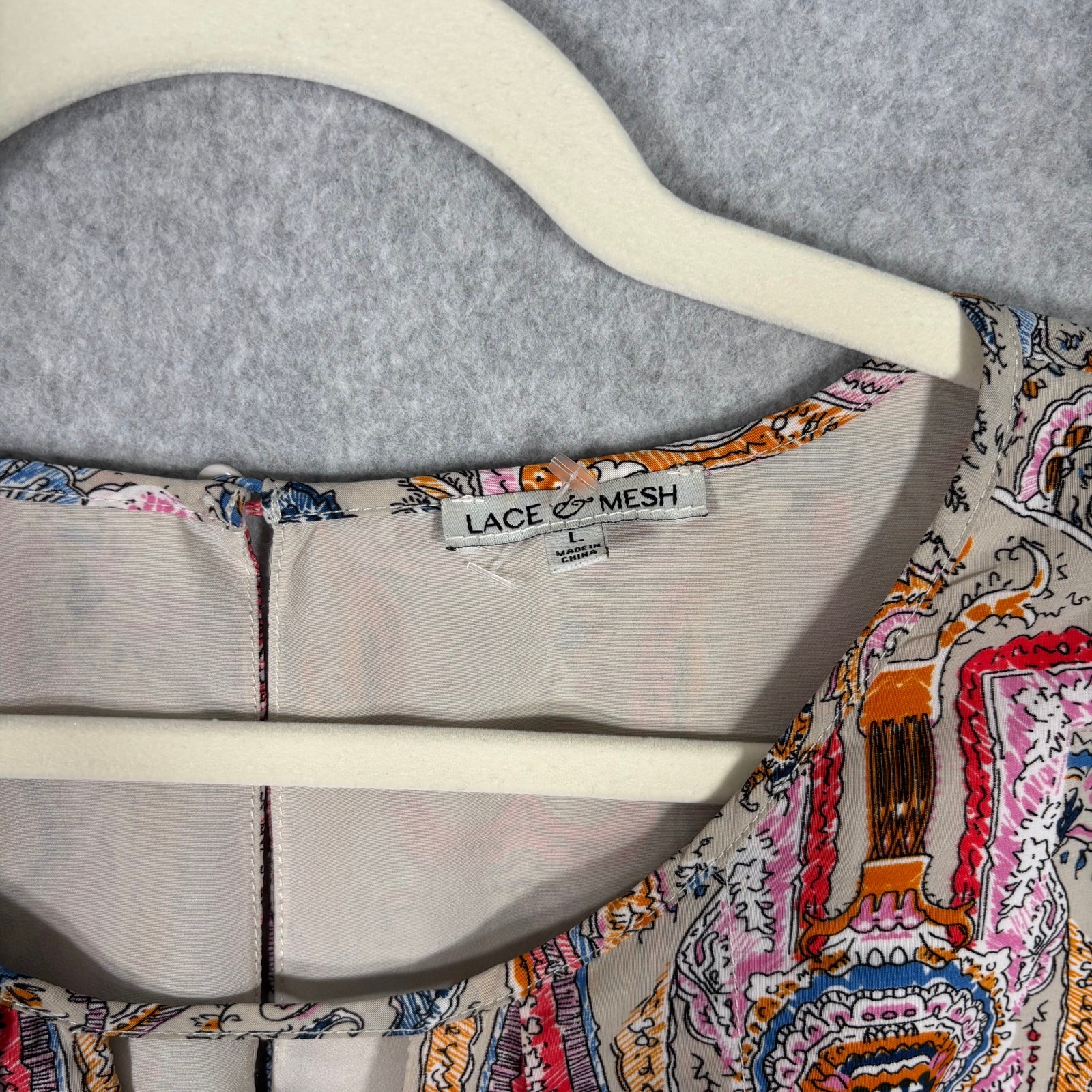 Lace mesh Dress Large Paisley Medallion Flowy Resort Feminine Artsy Abstract Twee Quirky 3/4 Sleeve V Neck Pleated Elastic Waist Lined Corp Career Work Office Business Church Beach Vacation Resort Coastal Cruise Feminine Romantic Mediterranean Mini Short Knee Satin Silky Preppy Nautical Southern EXCELLENT Pre-owned condition: minimal to no signs of wear, no stains or holes SKU 7809 **Please see all pictures for full item condition, details, and approximate measurements** - Ships Same/Next Day, Professional Seller, Offers Welcome, Like or watch for price drops - Item in photos is exact item you will receive - I list new items daily, be sure to browse my store/closet for more items - Bundle pricing and combined shipping available for additional savings - Feel free to send a message
