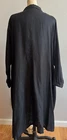 For Sale is a Dress To Kill (DTK) Jane Mohr sz 2 Linen Duster Jacket in black. This Designer Art to Wear piece features a collared neckline, button at the chest and open front with long sleeves. The unique pocket design is a triangle shaped piece that pulls over and connects with buttons. Excellent pre-owned condition, no problems to report. 100% Linen, machine wash warm. Measurements: Chest- 54" measured armpit to armpit and doubled Length- 47"