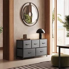 You may also like Tall LED Dresser with Charging Station Vertical Storage Tower Unit for Bedroom 72.79 USD Free shipping Multifunctional Fabric Dresser 5 Drawers Organizer Bedroom Living Room Closet US 72.53 USD 77.99 USD Free shipping 7% off Dresser TV Stand Entertainment Center Fabric Drawers Media Console Table Chest 83.31 USD 89.58 USD Free shipping 7% off 5 Drawers Dresser Vertical Storage Tower Fabric Dresser for Bedroom Organizer 64.07 USD 68.89 USD Free shipping 7% off Tall 4 Drawers Dresser Vertical Storage Tower Black Dresser Bedroom Nightstand 64.99 USD 77.99 USD Free shipping 17% off Dresser W/ 7 Drawers Storage Tower Entryway Closets Steel Frame Easy Pull Handle 62.97 USD 85.79 USD Free shipping 27% off Multifunction 3 Drawer Chest Dresser Storage Organizer Bedroom Entryway Closet 47.41 USD 50.98 USD Free shipping 7% off Dresser TV Stand, Entertainment Center with Drawers Media Console Table Bedroom 60.44 USD 64.99 USD Free shipping 7% off Freestanding Tall Fabric Dresser with 8 Drawers Storage Tower Closet Living Room 65.44 USD 77.99 USD Free shipping 16% off Fabric Dresser 6 Drawer Storage Tower with Bins Chest of Drawers for Living Room 72.53 USD 77.99 USD Free shipping 7% off Double Fabric Dresser with 8 Drawers Storage Tower with Bins for Closet Hallway 58.55 USD 72.79 USD Free shipping 20% off 9-Drawer Dresser Fabric Storage Tower Tall Chest Organizer Unit with Fabric Bins 84.62 USD 90.99 USD Free shipping 7% off Dresser for Bedroom with 5 Drawers, Wide Chest of Drawers, Fabric Dresser, Storage Organizer Unit with Fabric Bins for Closet, Living Room, Hallway, Dark Grey Product Dimensions 11.7"D x 39.1"W x 21.7"H Color A-dark Grey Mounting Type Freestanding Room Type Bedroom,Bedrooms,Hallway,Living Room,Office About this item MULTIFUNCTION DRESSER: Match perfectly with other storage towers; This chest of drawers is great for bedroom, closet, living room, hallway, dorm and office. LARGE STORAGE SPACE: The dresser for bedroom is ideal for organizing your clothes and daily necessities; Wood top can place things you want to display or keep in reach, such as lamp, photos… STURDY ORGANIZER UNIT: Strong steel frame offers stable support and ensures years of use; Non-woven fabric bins are easy to clean. The dresser can also be used as TV stand for small-size TV. 5 DRAWER CHEST: Features 5 removable foldable drawers; Easy pull handles help open and close the drawers smoothly; 4 adjustable feet protect your floor from scratches. EASY ASSEMBLY: This storage drawer unit is easy to assemble with hardware included; Assembly video has been uploaded for guidance. Overall dimensions: 39.1" L x 11.7" W x 21.7" H.