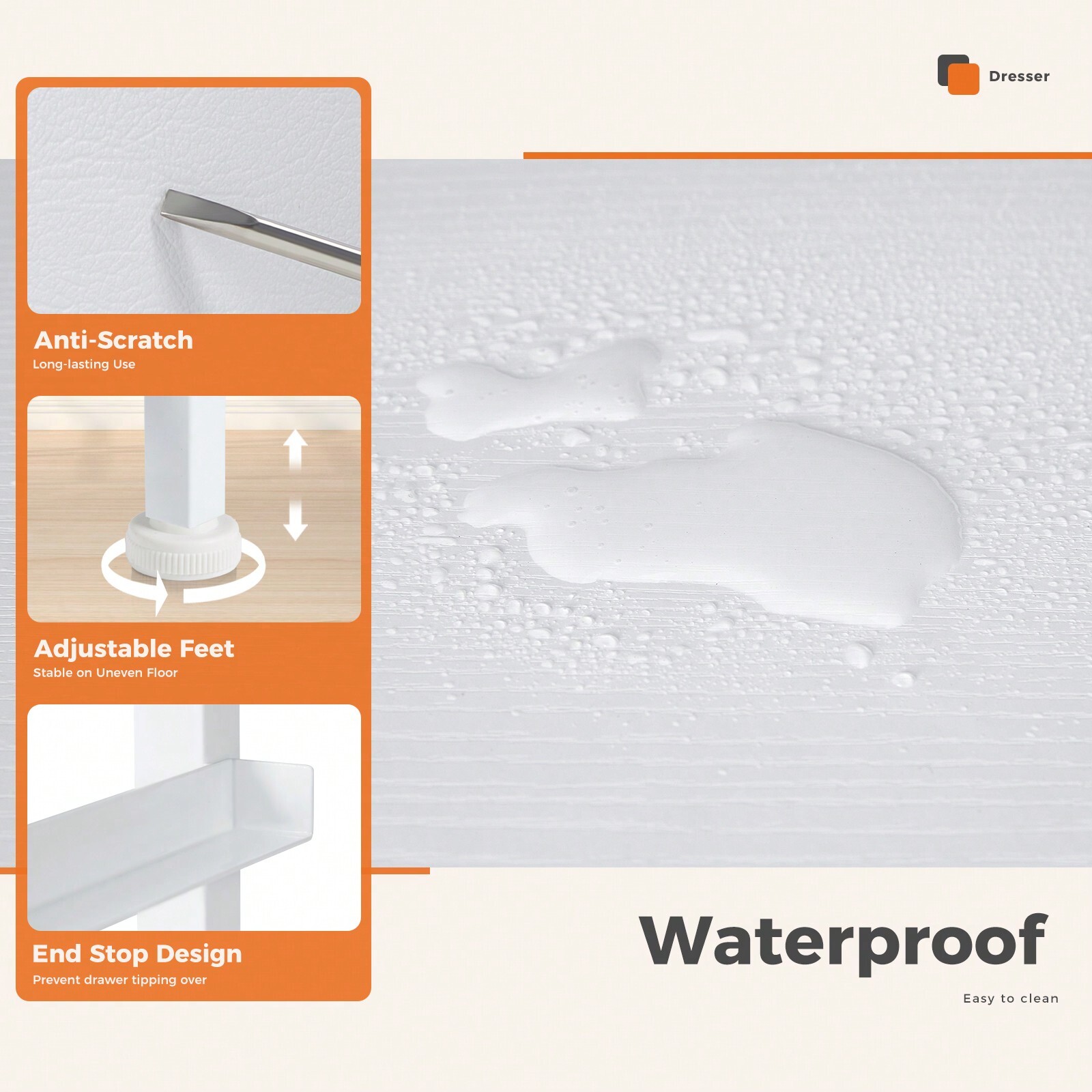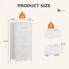 [A Versatile Dresser That Radiates Elegance in Every Room]The dresser's sleek and contemporary design adds a touch of elegance to any room, blending seamlessly with various decor styles for a cohesive look. [Ample Storage]Four spacious drawers of dressers provide plenty of room for organizing clothes, accessories, or household items, helping you maintain a clutter-free space. Fits right into your bedroom, living room, hallway, entryway, closet, nursery, and playroom. [Sturdy Construction and Durable Material]This fabric dresser combines a water-resistant MDF board with a durable steel frame, making it sturdy under a load of 44 lb. Anti-tipping accessories are also equipped to prevent accidents. All other sides and gaps are made of high-quality breathable, non-woven synthetic fiber, harmless and wear-resistant. [Versatile Use]Whether in the bedroom, living room, or hallway, this versatile dresser enhances organization and style wherever it's placed, making it a practical addition to any home. This tall dresser is lightweight, only about 15 lb, and can be moved anywhere without much effort. [Easy Assembly]All the necessary installation tools of 4 drawer dresser are included in the package and you can find the guide video on this page. According to the instructions, you can complete the installation in about 30 minutes. The time will be shortened if you use your power tools.