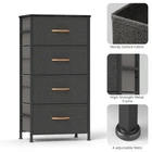 Please pay attention that it is a small dresser with dimensions of 17.7" L x 11.7" W x 36.4" H, which is designed for small spaces Multi-scene Application: This 4 drawers dresser is designed in a modern concise style, which is attractive and functional, making it suitable for any room. It can be a storage dresser in the bedroom or a side table in the living room, also great for closets, nurseries, entryways, hallways, offices, playrooms, children's room and more Sufficient Storage Spase: Features foldable storage drawers. Each fabric drawer (NOT WOOD) offers large storage space, perfect for organizing clothes, toys, socks, underwear, scarves, blankets and other accessories. The drawers are made of High-quality non-woven fabric drawers is easy to clean Sturdy Construction: Strong steel frame and water-resistant wood top offer stable support and ensure years of use; Wood top provides hard surface for displaying lamps, clocks, books, glasses etc Adjustable Feet: Flexible adjustable feet can compensate for any irregularities in the floor.Whatever height you prefer, the adjustable feet will meet your needs EASY to Assemble: Detailed instructions and installation video will guide you through a hassle-free installation; All hardware is included in the package so you only need to fasten some screws