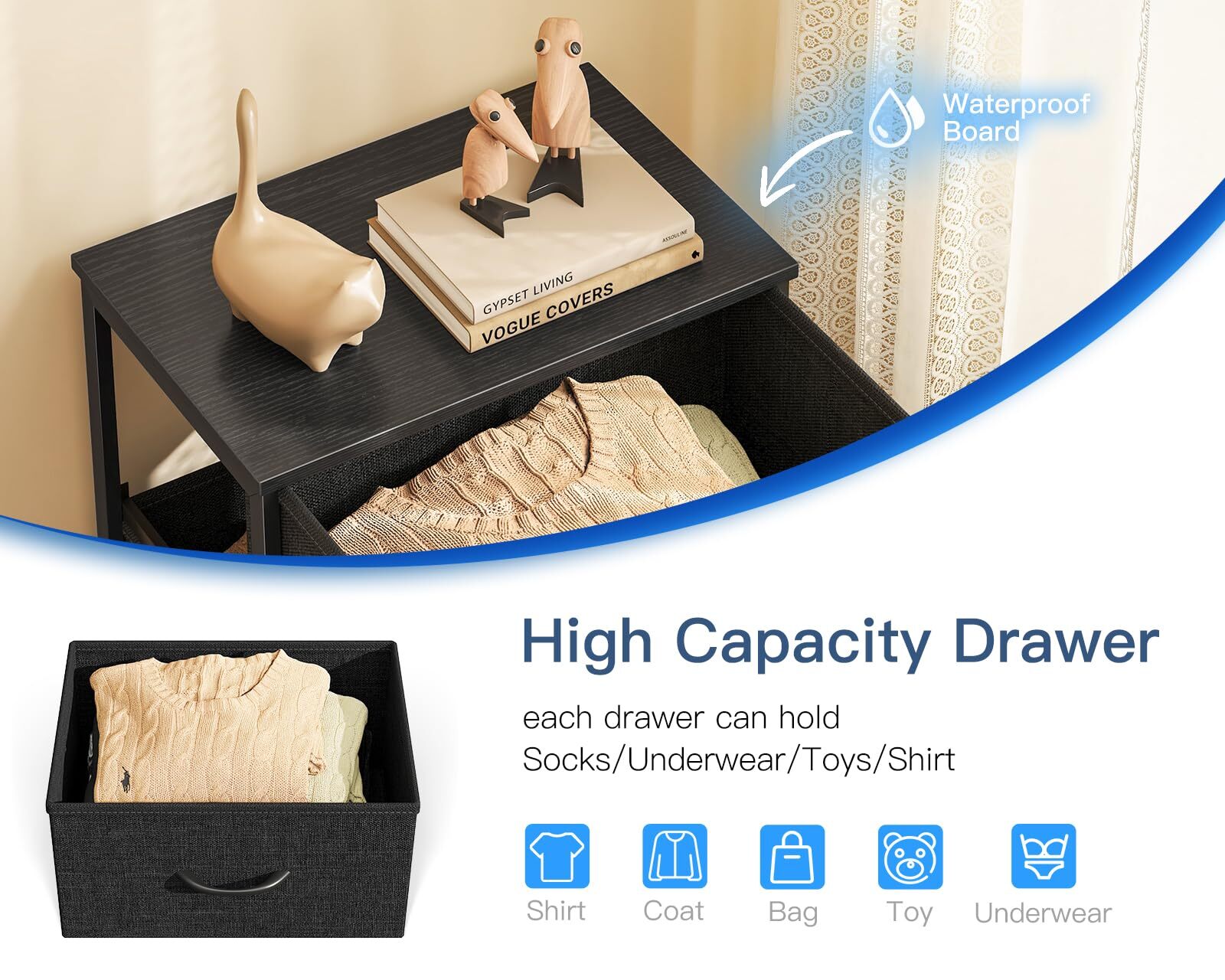 Effortless Assembly: Enjoy easy assembly with our fabric dresser, supported by round-the-clock installation assistance and after-sales service for any concerns regarding quality Compact Design: Measuring 11.81"D x 15.74"W x 28.81"H, this small dresser is made for tight spaces, maximizing your room's potential Multi-Functional: It transcends the role of a dresser, doubling as a bedroom nightstand or a stylish end table by the couch, while providing ample storage for your clothes and essentials Spacious Drawers: Each drawer boasts an 8.3" depth, providing ample room to organize your clothes and belongings neatly, reducing creases and enhancing organization Sturdy Construction: Crafted with a robust metal frame, wooden top, X-bracing for stability, an anti-tip design, and adjustable feet for uneven surfaces, this dresser stands the test of time