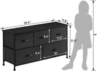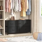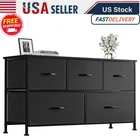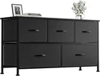Dresser for Bedroom with 5 Drawers, Wide Chest of Drawers, Fabric Closet Dresser, Clothing Storage Organizer Unit with Fabric Bins, for Closet, TV Stand, Living Room, Hallway, Black [Multifunction dresser] By storing the sundries reasonably and orderly, you can have a clean and comfortable environment; This chest of drawers is great for bedroom, closet, nursery, living room, hallway, dorm and entryway. [Large storage space] Features 5 removable drawers, add up to a total of 140lbs of storage, you can put books, clothes, toys and other household items; Wooden table tops also provide plenty of space for decorative items or sundries. [Sturdy durable] Sturdy steel frame, wood top and high-quality non-woven fabric greatly enhance the overall stability, and very durable can be used for many years. [Attention to details] Storage drawers with convenient wooden handle for opening and closing more easily; Adjustable feet, suitable for uneven floors and protect floors from scratches; Waterproof wood top is easy to clean . [Easy assembly] There are clear assembly steps and corresponding tools inside the package, you can easily assemble it step by step, overall dimensions: 39.4" L x 11.8" W x 21.3" H. A SPACE SAVER Satisfy customers Better product Always making progress Elegant Design Sturdy and Durable Storage Helper Furmax Dresser with 5 Drawers Create high-quality product Looking for a high-capacity dresser for bedroom? Please don't miss our FURMAX fabric dressers, it will be your ideal choice! Sturdy steel frame and MDF wood board provide high stability and ensure the longevity of the product. The simple appearance and unique color make this dresser very modern, it can be integrated into various room styles, and it is a stylish and versatile dresser. Note : We Will Provide You This Item With Good Sources. Product Size : 39.4"W x 11.8"D x 21.3"H Material: MDF Board & Metal & Non-woven Fabric Color: Black