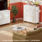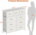 Store New Arrivals Add to Favorite View Feedback Contact Dresser for Bedroom with 9 Drawers, Chest of Drawers for Closet, Living Room, Hallway, Nursery, White Dresser with Sturdy Steel Frame, Fabric Bins, Leather Finish, Wood Top (Glacier White) Description Item model number Dresser Material Alloy Steel, fabric, Iron Finish Type Faux leather Room Type Bedroom,Hallway,Living Room,Nursery,Office Size 11.8"D x 33.5"W x 39.4"H (9 Drawers) Assembly Required Yes Mounting Type Freestanding Color Glacier White Product Dimensions 11.8"D x 33.5"W x 39.4"H Furniture Finish White Finish Country of Origin China Item Weight 0.16 ounces Drawer Type Under Mounted Slide Number of Drawers 9 Style Modern Model Name Chests of drawers Product Care Instructions Wipe with Dry Cloth Number of Pieces 1 🐱🚀9-DRAWERS DRESSER FOR BEDROOM: Measuring 33.5'' W x 11.8'' D x 39.4'' H, this white dresser provides ample storage without taking up too much space. Perfect for a nursery, closet, living room, hallway, dorm, or office, it also doubles as a TV stand. The glacier white finish adds a touch of drama to your home décor. 👚EXTRA STORAGE: With 3 medium and 6 spacious drawers, this chest of drawers offers plenty and classified of storage for lingerie, blankets, underwear, clothes, toys, and more. The wooden top provides a sturdy surface for a 45'' TV or displaying items such as vases, lamps, and books. 🏋STURDY AND DURABLE: Made with a strong steel frame and thick wooden top, this fabric dresser provides stable support and is built to last. The non-woven fabric and faux leather front are easy to clean and operate quietly. This dresser is a reliable addition to your bedroom furniture. 🏡MAKE LIFE BETTER: The drawers pull out easily, allowing you to carry the contents without disassembling the drawer or the entire dresser. The 9 independent drawers are perfect for organizing your daily necessities by category, eliminating the need to search through a pile of items. 4 adjustable feet protect your floors from scratches. 💖EASY ASSEMBLY: This closet organizer and storage unit is easy to assemble with the included hardware. We have also uploaded an assembly video for guidance. Please note the step showing the curved part of the bar; be sure all curved ends are on one side. If you have any questions or concerns, please let us know. Your satisfaction is always our priority. Product Description ABOUT US We offer the best prices around on high quality products. Our E-store includes media such as books, movies, music and games while offering electronics, toys, sporting apparel, clothing, tools, general home, garden items and more. SHIPPING We are always working hard to ensure your package arrives as soon as possible. Please understand that some factors like weather, high postal traffic, and the performance of shipping companies are outside of our control. We offer free shipping to the lower 48 states and ship within 2 business days of payment, usually sooner. We do not accept P.O. Boxes. Please provide a physical address. For shipping outside of the continental USA, we only use eBay's Global Shipping Program.The item is shipped to KY and then sent to the rest of the world. International customers are responsible for all duties and taxes. Continue to check out in order to calculate costs for shipping the item to your country. Messages regarding eBay's Global Shipping Program MUST be directed at eBay EXCLUSIVELY. RETURNS We offer a 30-Day Return Policy on items which you are not completely satisfied with. You have the option for a full-refund or an exchange of the item. No returns are available on items shipped outside of the USA. PAYMENT We accept PayPal. CONTACT US This page content is yet to come Please ad us to your favorite seller and visit again later Thank You CUSTOMER SATISFACTION We try our very best to make sure every customer is completely satisfied. If there's a problem, message us! We're happy to help. WE ACCEPT Copyright © 2021 AutoDS. | All Rights Reserved