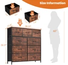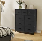 9-Drawer Dresser with Fabric Storage – Perfect for All Your Needs! Color - Black Full Size: Dimensions: 11.81"D x 39.37"W x 39.96"H Key Features: Ample Storage Space: 6 Large Drawers: Each can hold up to 12 adult T-shirts or 7 pairs of jeans. 3 Small Drawers: Ideal for socks, underwear, children's toys, and more. Stackable: Own more than one? Stack them to save space! Durable and Stable: Thickened Metal Frame: Ensures stability. Adjustable Legs: Protect your floor and adjust balance. Anti-Tilt Device: Secure the dresser to the wall for added safety. Versatile Use: Can be used as a TV stand, bedside cabinet, wardrobe, hallway shoe cabinet, and more. Lightweight at only 29 pounds, making it easy to move. Quick Assembly: Comes with all necessary tools. Guide video available for easy installation. Can be assembled in about 30 minutes, even faster with electric tools. Additional Information: Wooden Top: Supports up to 66 pounds, perfect for replacing a TV stand. Fabric Box Included: Great for storing magazines, clothes, toys, and more. For any questions or assistance during assembly, we're here to help! Get organized and stylish with our 9-drawer dresser today!