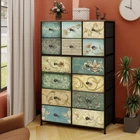 【Original Design Retro Flower Pattern Fabric Drawers Dresser】The retro flower pattern on each drawer makes it a stand-out piece of furniture that is sure to catch the eye of anyone who enters the room. This dresser is designed to complement any existing home decor. It also adds a touch of charm and elegance to your room. 【Ample Storage Chest of Drawers】This beautiful dresser offers ample storage space with its spacious fabric drawers, the fabric drawers are easy to open and close, making it convenient to store and access all of your belongings,whether you need a place to store clothing, linens, or other household items, this drawer fabric dresser is the perfect choice. 【Premium Material and Handcraft】The dresser is crafted with high-quality iron frame with sturdy waterproof partical board top to ensure long-lasting durability and functionality.The non-woven synthetic fabric is breathable and harmless. 【User-Friendly Detail Design 】The four metal feet are equipped with height adjustable foot pads to protect your floors and designed for uneven floors.Plus, anti-tip accessory included to prevent accidents.Your family's safety is a top priority.This dresser is perfect for bedrooms, closets, entryways,bathroom,and living rooms. 【Easy to Assemble】Assembling the dresser is a breeze, thanks to the detailed instructions and all hardware included.If you have any issues, please contact us immediately, we will give you the best reply.Don't miss out on this stylish and practical addition to your home!