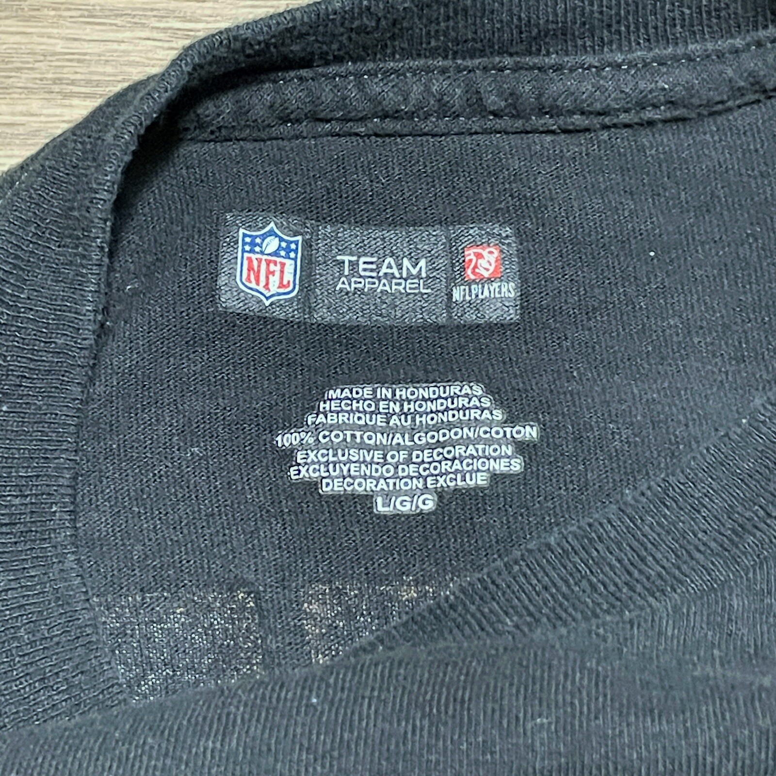 Show your support for the New Orleans Saints with this black NFL Team Apparel T-shirt featuring Drew Brees' #9 on the front. Made of comfortable jersey fabric, this size L shirt is perfect for any Saints fan. The shirt is designed with the NFL logo and is officially licensed, ensuring that you are getting a high-quality product. This T-shirt is perfect for game day or any day, and is sure to show off your love for the Saints. Whether you are watching the game from the stands or cheering from home, this shirt will make you feel like a true fan. Get your hands on this officially licensed NFL Team Apparel T-shirt today!