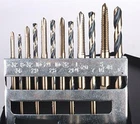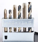 18 pc. Tap and Drill Set Premium High Speed Steel Spiral Point, NC Spiral Point NC Tap & Drill Set Contains: #36, 29, 25, 21, 7, F, 5/16, U, 27/64, 6-32, 8-32, 10-24, 10-32, 1/4-20, 5/16-18, 3/8-16, 7/16-14, 1/2-13 Set includes tap and corresponding drill bit Spiral Point Gold Oxide Plug Style Committed to Quality, Consistency, Service and Value QUALITY at Viking Drill and Tool begins with the finest tool steel we can buy and ends with the world class products in our catalog. Our cutting tools are designed, engineered and superbly crafted to provide long lasting durability. Our 74,000 square foot St. Paul, Minnesota manufacturing facility is specifically designed for the unique task of efficient high quality cutting tool manufacturing. CONSISTENCY is a natural by-product of our experience and dedication to quality. At Viking Drill and Tool, skilled machine operators working with the world's finest raw materials have the capability of providing you with consistent high quality products time after time, year after year. On our Ultra Bor Super Premium products, we routinely cut recognized tool tolerance standards by one half to insure that our customers receive drills manufactured to the tightest possible specification and utmost in consistency and accuracy. All materials used at Viking Drill and Tool meet the rigorous qualifications of National Aerospace Standard (NAS) 907. This standard, recognized as the most stringent in the industry precludes the use of lower quality steels which do not hold up under rigorous applications. The use of these extreme high quality materials insures that consistency is built in to every one of our U.S. manufactured products. Our extensive selection of U.S. manufactured tools is designed to give you the right tool at the right price for whatever tough job you come up against.