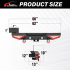 With D-rings Rear Or Front Bumper For 2007-2018 Jeep Wrangler JK JKU Unlimited Please pay attention to the product options you select: If you choose Front & Rear Bumper,You can get 1 × Front Bumper, 1 × Rear Bumper and Mounting Hardware; If you choose Only Front Bumper,You can get 1 × Front Bumper and Mounting Hardware; If you choose Only Rear Bumper,You can get 1 × Rear Bumper and Mounting Hardware; Suitable Models : Compatible with 2007-2018 Jeep Wrangler JK JKU Unlimited 2/4 Doors Package Includes : ① Front & Rear Bumper option : 1 x Front Bumper, 1 x Rear Bumper, 7 x LED Lights, 4 x D-rings, 1 x License Plate Bracket, 2" Hitch Receiver, Paintable Decor, 2 x manual, screw fittings ② Fro nt Bumper option : 1 x Front Bumper, 2 x D-rings, 5 x LED Lights, 1 x manual, screw fittings ③ Rear Bumper option : 1 x Rear Bumper, 2 x D-rings, 2 x LED Lights, 2" Hitch Receiver, 1 x manual, License Plate Frame, Paintable Decor, screw fittings Product Information : Package Dimensions : 73.23"D x 17.72"W x 16.14"H Installation mode: Bolt-On With Sensor Holes: No Steel thickness: 3mm Placement on Vehicle: Front/Rear Item Weight: Front Bumper: 72 Pounds; Rear Bumper: 65 Pounds Material: Carbon Steel Color: Black (hand measurements may have an error of 2-3 mm/0.078-0.118 in) Feature : Front bumper : ① The front bumper comes equipped with 4x 18W high-power LED spotlights and a 120W high-power LED flood spot combo light bar. It also includes 4.75-ton capacity D-rings (rated at 9500lbs.); ② Our front bumper is made of high-strength steel for durability, with a two-stage black powder coating for style and protection; ③ The package contains mounting hardware and installation instructions for a straightforward, drill-free, bolt-on installation; ④ Powder Coated, Durability, Waterproof , Rust-proof ; Rear Bumper : ① This bumper includes 4.75-ton capacity D-rings (rated at 9500 lbs.), 2X upgraded LED lights for illumination, Universal License Plate Bracket and a standard 2" receiver hitch. It offers customizable detachable decor to match your vehicle; ② High-strength steel, durable rear bumper. Textured black powder coating resists rust for long-lasting performance and appearance; ③ The package comprises mounting hardware and user-friendly installation instructions for a straightforward bolt-on installation—no drilling needed; ④ Durability, Waterproof, Rust-proof; Warranty Period :2 year Standard Shipping (FedEx Ground or FedEx Home Delivery) Will usually ship within 3 business days of receiving cleared payment Please pay attention to the product options you select: If you choose Front & Rear Bumper,You can get 1 × Front Bumper, 1 × Rear Bumper and Mounting Hardware; If you choose Only Front Bumper,You can get 1 × Front Bumper and Mounting Hardware; If you choose Only Rear Bumper,You can get 1 × Rear Bumper and Mounting Hardware; Suitable Models : Compatible with 2007-2018 Jeep Wrangler JK JKU Unlimited 2/4 Doors Package Includes : ① Front & Rear Bumper option : 1 x Front Bumper, 1 x Rear Bumper, 7 x LED Lights, 4 x D-rings, 1 x License Plate Bracket, 2" Hitch Receiver, Paintable Decor, 2 x manual, screw fittings ② Fro nt Bumper option : 1 x Front Bumper, 2 x D-rings, 5 x LED Lights, 1 x manual, screw fittings ③ Rear Bumper option : 1 x Rear Bumper, 2 x D-rings, 2 x LED Lights, 2" Hitch Receiver, 1 x manual, License Plate Frame, Paintable Decor, screw fittings Product Information : Package Dimensions : 73.23"D x 17.72"W x 16.14"H Installation mode: Bolt-On With Sensor Holes: No Steel thickness: 3mm Placement on Vehicle: Front/Rear Item Weight: Front Bumper: 72 Pounds; Rear Bumper: 65 Pounds Material: Carbon Steel Color: Black (hand measurements may have an error of 2-3 mm/0.078-0.118 in) Feature : Front bumper : ① The front bumper comes equipped with 4x 18W high-power LED spotlights and a 120W high-power LED flood spot combo light bar. It also includes 4.75-ton capacity D-rings (rated at 9500lbs.); ② Our front bumper is made of high-strength steel for durability, with a two-stage black powder coating for style and protection; ③ The package contains mounting hardware and installation instructions for a straightforward, drill-free, bolt-on installation; ④ Powder Coated, Durability, Waterproof , Rust-proof ; Rear Bumper : ① This bumper includes 4.75-ton capacity D-rings (rated at 9500 lbs.), 2X upgraded LED lights for illumination, Universal License Plate Bracket and a standard 2" receiver hitch. It offers customizable detachable decor to match your vehicle; ② High-strength steel, durable rear bumper. Textured black powder coating resists rust for long-lasting performance and appearance; ③ The package comprises mounting hardware and user-friendly installation instructions for a straightforward bolt-on installation—no drilling needed; ④ Durability, Waterproof, Rust-proof; Warranty Period :2 year