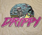 Get ready to hit the skateboard ramp in style with this Drippy Skater Neon Graphic T Shirt. Featuring a skeleton design with a colorful 80s and 90s theme, this t-shirt is perfect for any unisex adult who loves to skate. In good pre owned condition. Good for Halloween attire as well