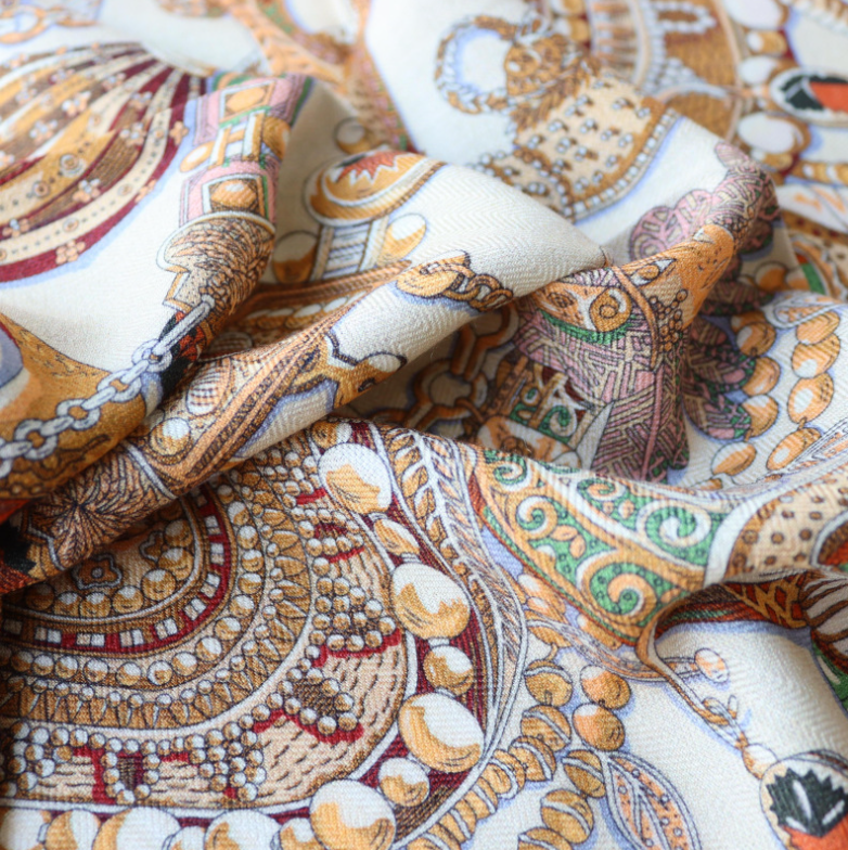 I love my gorgeous silk scarf which is more beautiful than the picture!! Exactly what I wanted and looks perfect with my sweater! I was amazed by how quickly it arrived— I got an excellent price on the scarf and on shipping, too! I will definitely keep this seller!! THANK YOU SO MUCH!!