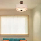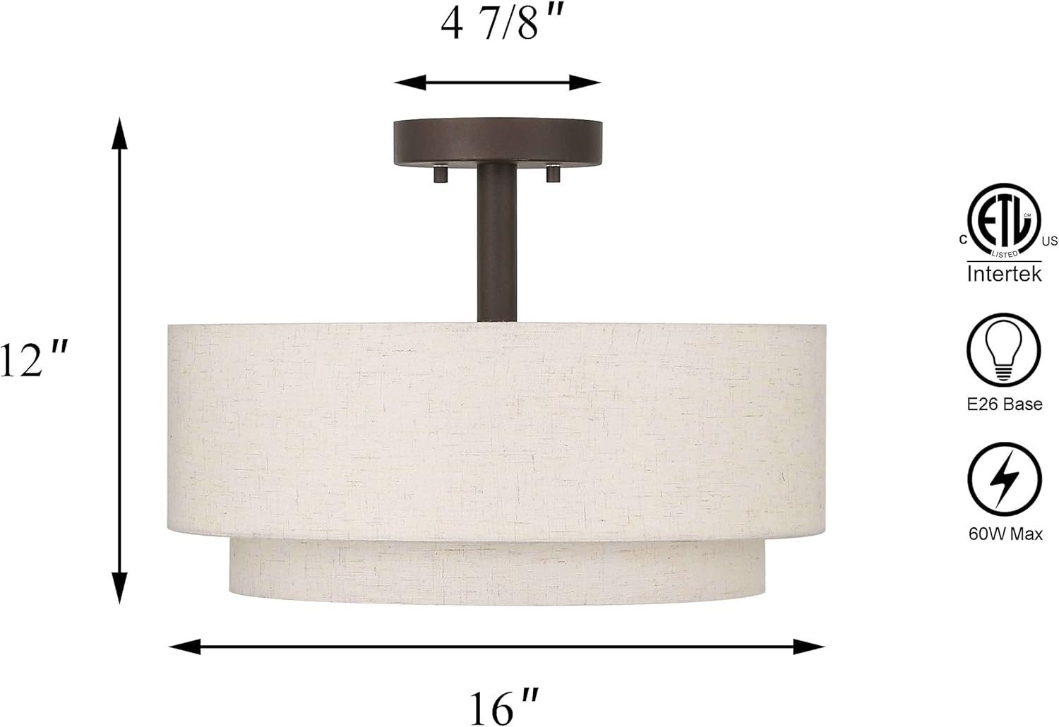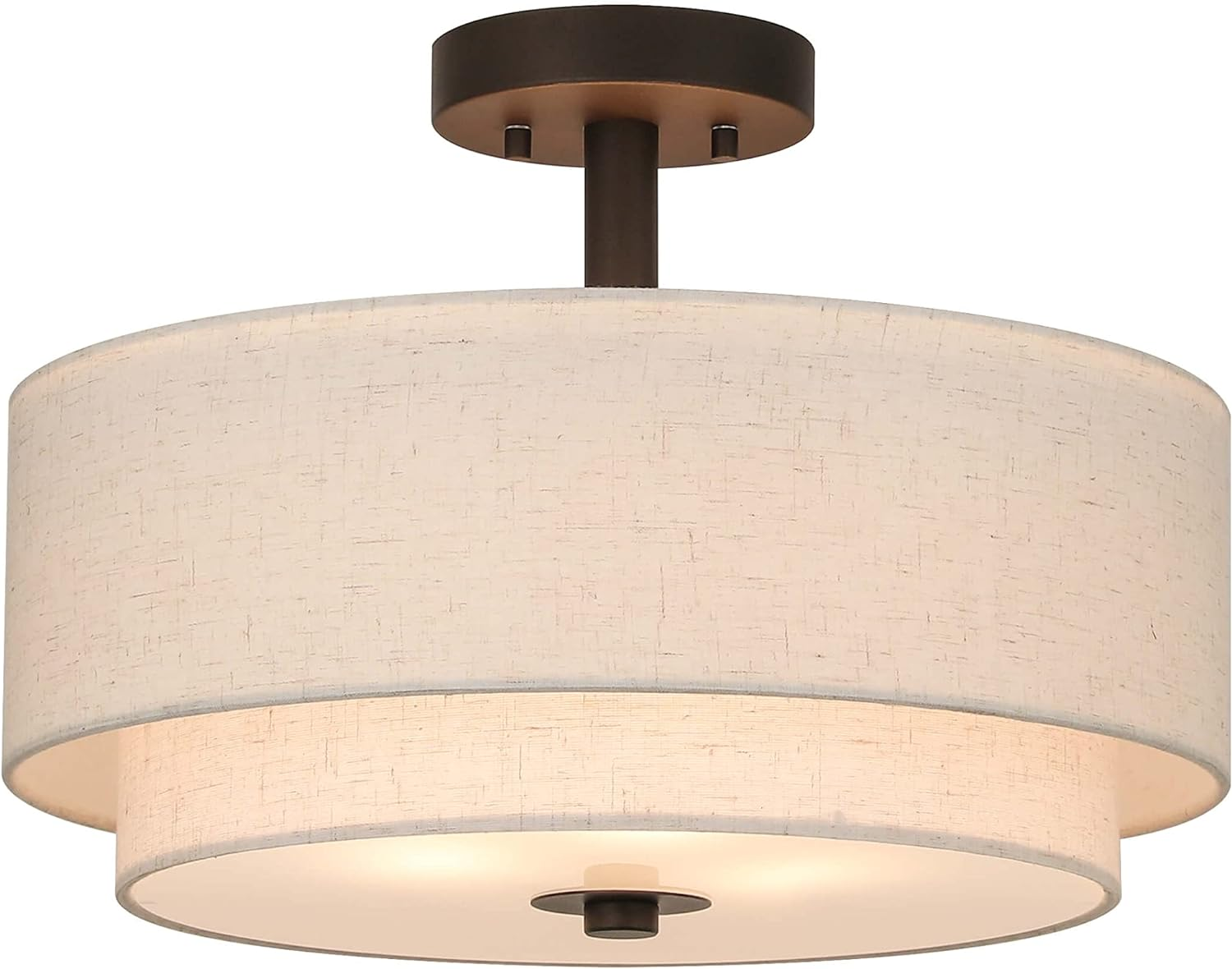 Store New Arrivals Add to Favorite View Feedback Contact Drum Semi Flush Light, 3 Light Semi Flush Mount Ceiling Light Fixture with Fabric Shade Modern Close to Ceiling Light for Bedroom & Living Room Dark Bronze Finish XB-SF1289-DB Description Light Source Type LED, Fluorescent, Incandescent Item model number XB-SF1289-DB Style Modern Number of Items 1 Power Source Hardwired Fixture Type Non Removable Number of Light Sources 3 Control Method App Embellishment Lighting Theme Home Batteries Included? No Lighting Method horizontal Specification Met ETL Controller Type Push Button Unit Count 1.0 Count Room Type Kitchen, Bedroom, Living Room, Dining Room, Home Office, Bar, Hallway, Foyer, Entryway Finish Powder Coated Assembly Required Yes Switch Type Push Button Material Fabric Shade, Glass Diffuser, Iron Installation Type Semi Flush Mount Model Name Drum Semi Flush Light Finish Type Powder Coated Specific Uses For Product Indoor use only Included Components Shade Item Package Quantity 1 Indoor/Outdoor Usage Indoor Brightness 2400 lumen Country of Origin China Water Resistance Level Not Water Resistant Batteries Required? No Warranty Type Limited 1-Year Item Weight 6.35 pounds Light fixture form Close to Ceiling Special Features Drum Ceiling Light with Glass Diffuser Special Feature Drum Ceiling Light with Glass Diffuser Part Number XB-SF1289-DB Shade Color Beige Mounting Type Ceiling Mount Color Dark Bronze Wattage 60 watts Bulb Base E26 Shape Drum Voltage 120 Volts Plug Format A- US style Recommended Uses For Product Indoor Shade Material Fabric Warranty Description Limited 1-year warranty. Product Dimensions 16"L x 16"W x 12"H Number Of Pieces 1 FEATURE: 3 light drum semi flush light with iron hardware and dual fabric drum shade, frosted glass inner diffuser. This semi flush mount ceiling light is not only considerably light but mechanically strong and durable. Dark bronze finish metal canopy, accents and trim. MODERN DESIGN: Modern ceiling light fixture with double drum shade that is 2 tire which adds to the overall elegance of the lights, our smooth line of transitional styled lights which blend in with your room theme adding a warming visual appeal that only these lights can create. This close to ceiling light is perfectly suitable for hallway, entry, foyer, hall, corridor, bedroom, living room, dining room, kitchen and so on. It is ideal for medium-high ceilings. EASY INSTALLATION: Hardwired. Dark bronze semi flush ceiling light comes with mounting hardware accessories and instruction for quick and easy installation. MEDIUM BASE SOCKET: Suggest to takes three maximum 60 watt Medium base bulbs (incandescent, CFL or LED compatible). Bulbs not included. ETL LISTED. For any question on any accessory, just feel free to . Product Description With a dual shade design, this drum semi flush light is a distinctive choice for indoor home lighting. The 2 tire dual fabric shade and frosted glass diffuser, solid dark bronze hardware and canopy make this semi flush mount ceiling light looks simple but warming when lights out the soft light. 3 light semi flush light with a smooth line of transitional styled lights which blend in with your room theme adding a warming visual appeal that only these lights can create. This close-to-ceiling light is perfectly suitable for hallway, entry, foyer, hall, corridor, bedroom, living room, dining room, kitchen and so on. It is ideal for medium-high ceilings. Easy to install. 2-layer fabric drum shade, the bedroom lights for the ceiling is easy to blend in any decor with the beige smooth shade. High end look, the hallway light fixtures are powder coated with a classic dark bronzed finish, which goes with most styles of home interior designs. Product Specification Dimension: W:16" x H:12" Finish: Dark Bronze Shade Material: 2 Tier Fabric Shade + Frosted Glass Diffuse
