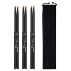 RELIABLE MATERIAL — 5A drumsticks is made of hickory wood,which is professional level come with high durability, good resilience. Also, the material is environmentally friendly, non-toxic and odorless. USER-FRIENDLY — The top of drumsticks apply drop-shaped design, suitable with normal drum set or dumb drum pads, wonderful in daily practice and performance, also easy for beginner and professionals drummers. HUMANIZED DESIGN — With well-polished surface and comfortable feeling, our drum stick would reduce wrist fatigue, and non-slippery, light to hold during long-time playing Just enjoy each beat. CLASSIC BLACK— Black drum sticks are more cooler than other drum stick, and we also have different kinds of quantities for you. COMES WITH WHAT YOU NEED — The package includes 1 pair of 5A black drumsticks and a carrying bag, together with 30 days unconditional guarantee backed up by our awesome customer support team ready to help.