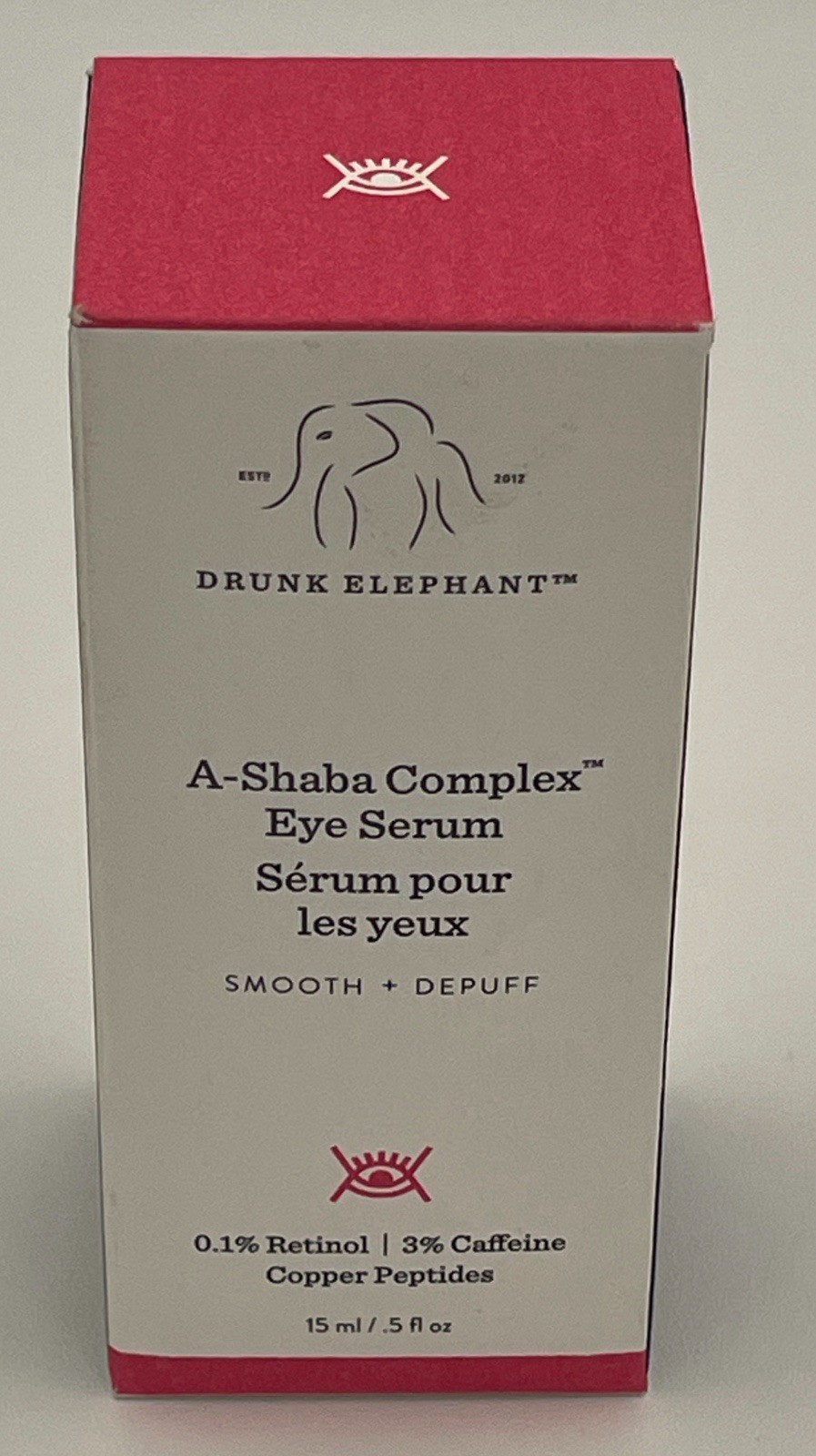 Drunk Elephant A-Shaba Complex by Drunk Elephant, .5 oz Eye Serum With Box. Daily, morning or night PERFECT WHEN YOU Need a smoothing eye serum that targets fine lines and wrinkles and alleviates puffiness