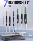 Dry Brush Miniature Painting, 7 Sizes Professional Drybrush Set with Storage Case, Hobby Detail Paint Brushes for Tabletop & Wargames Miniature Warhammer 40K Model Painting Color Black Material Synthetic Hair, Birch Wood Size 7 Sizes Handle Type Dowel Handle VARIOUS SIZE DRY BRUSH: The drybrush set comes with 7 sizes miniature painting dry brush in a storage box. The size 13 1/2 drybrush is ideal for applying paint on larger raised areas, while the size 3 drybrush is perfect for handling smaller details. These miniature painting brushes with different shapes can be used for different painting techniques and areas of drybrushing PROFESSIONAL-GRADE DRYBRUSH: Our dry brushes for miniatures are made of high-quality synthetic goat hair mixed with real goat hair, which is dense, semi-stiff, and springy bristles, as well as a slightly domed shape. The bristles are soft and easy to dip in paints, taking for a seamless and effortless drybrushing experience CONVENIENT TO USE: With unique bristles shape and short handle design, the dry brush set are comfortable to hold and easy to grip, making the painting process smooth and efficient. Durable and resistant to deformation or shedding, ensuring for a long time use without compromising performance MINIATURE PAINTING BRUSHES: These drybrushes can help artists and model makers easily improve drybrushing techniques, enhancing the texture, pattern, and detail effects on model surfaces. Their unique performance delivers an excellent dry brushing experience, easily achieving highlights, shadows and depth MINIATURE & MODEL PAINTING: Nicpro Drybrush Set is specifically designed for model and miniature painting, making it ideal for warhammer 40K, model rendering, strategic game models, model