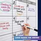 Packaging tube has some wear but the item is new & unused. Features & details 100% ERASABLE - Well treated dry erase reusable film. We use well treated film on the surface of our calendar, which make the surface smooth enough and the writing can be wiped clearly. Compatible with all kinds of whiteboard marker, and dry erase marker. GIANT SIZE CALENDAR (38” x 50”)- Our giant calendar allows you to use it flexibly according to your requirement. BIG WRITING ROOM- The size of square per date is 6.5 inch by 5.5 inch. Each square is divided into seven parts, enough room to write your plan of each day. QUICKLY MOUNT WITHOUT BUBBLE AND CAN BE REMOUNTED EASILY - Use push pins, thumb tacks or dual-side adhesive to mount on the wall. You can mount it easily within 2-3 minutes and say goodbye to annoying bubble and crease. You won’t need to buy a new calendar if you want to remount your calendar to other place later.
