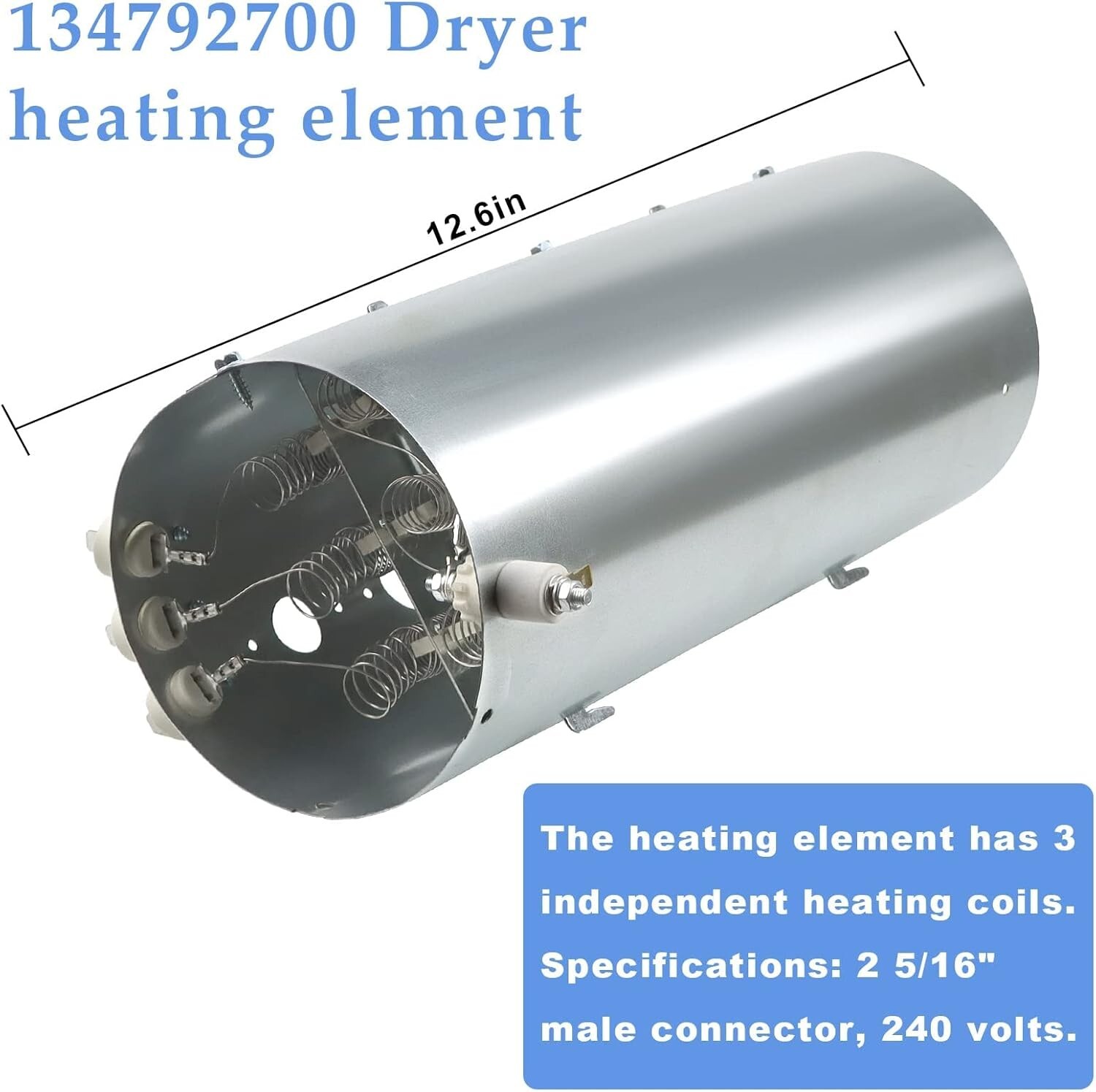 , Excellent Heat Resistance - Our 134792700 dryer heating element compatible with electrolux dryer heating element, The nickel-chromium content of the dryer heating element reaches 97%, 30% higher than similar products.Excellent heat resistance and the length of the upgraded electric heating wire is longer than that of other ordinary dryer replacement parts. Replacement resistance increased by 25%. Long heat-resistant life. This saves maintenance staff costs. The right chiose for you Cost-Effective Investment :134792700 dryer heating element kit, include 1*134792700 dryer heating element 1*3204267 cap thermostat and 1*137032600 thermal fuse. 134792700 heating element kit compatible with frigidaire electrolux kenmore dryer heating element,also ideal is replacement for crosely dryer heating element Specifications :134792700 Dryer heating element. The heating element has 3 independent heating coils.Specifications: 3 5/16" male connector,5500 Watts 240 Volts .Fix problems: dryer error codes E61, E64, E65.E66, too hot, too long drying time, won't start, no heat or not enough heat, dryer made unusual noises. Buy one kit, solve all your problems Superior Compatibility: 134792700 dryer heater duct replace 7134792700, ap4368653 ps2349309,eap2349309. 3204267 dryer high-limit thermostat repalce 508516 ap2131477 ps446428 eap446428, 137032600 thermal fuse replace 1483164 ap4368739 ps2349395 eap2349395,fit ffse5115pw0, fase7073la0, fase7074lw0, case7073la0, case7073lw0, fase7073lw0 About LUXRILIX: Each of our products are made of high quality and durable materials, while undergoing rigorous testing by the manufacturer's multi-step process (fully compliant with OEM standards), in order to ensure that each product that reaches you can satisfy you, if you are not satisfied with our products or our products not fit your dryer, please get in touch and we will find you a solution you're delighted with