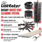 Ensure safer dryer operation with LintEater®! The LintEater® effectively removes dangerous lint buildup, a leading cause of house fires, which reduces drying times ... saving money on utility bills! Designed by a leading manufacturer of professional duct cleaning equipment, the LintEater® quickly cleans lengthy through-the-wall dryer vent systems! The auger brush and flexible nylon extension rods screw together for 30' of rotary cleaning when powered by a cordless drill (not included). Easy to use, the rotating action of the auger brush and flexible nylon rods scour dryer venting to effectively clean long lengths and traverse multiple turns. Remove loosened lint while cleaning with the included shop vac or blower adapter. LintEater®: Clean and Maintain Dryer Vents with Professional Results!" Designed by a leading manufacturer of professional duct cleaning equipment, the LintEater® quickly cleans lengthy through-the-wall dryer vent systems! The auger brush and flexible nylon extension rods screw together for 30' of rotary cleaning when powered by a cordless drill (not included). Easy to use, the rotating action of the auger brush and flexible nylon rods scour dryer venting to effectively clean long lengths and traverse multiple turns. Remove loosened lint while cleaning with the included shop vac or blower adapter. LintEater®: Clean and Maintain Dryer Vents with Professional Results!" Ensures Home Safety-Our dryer duct cleaning kit helps maintains the safe operation of your clothes dryer thus ensuring the safety of your home while reducing drying times and lowering utility bills. Easy to Use - Easily attach the dryer vent brush to your cordless drill for rotary cleaning. The included vacuum and dryer adapters allow you to use air from the dryer or vacuum to remove lint. Effective Lint Removal - The rotating action of the dryer vent cleaning brush and adjustable flexible rods thoroughly clean out almost every dryer vent system. Effective Lint Removal - The rotating action of the dryer vent cleaning brush and adjustable flexible rods thoroughly clean out almost every dryer vent system. Includes - 08 Long Flexible Screw-Connect Rods (3’), 1 Blockage Removal Tool, 1 Vacuum Adapter, 1 Dryer Adapter, 1 Self-Feeding 4” Auger Brush, 1 Lint Trap Brush (2 ½” Diameter), 1 Owners' Manual