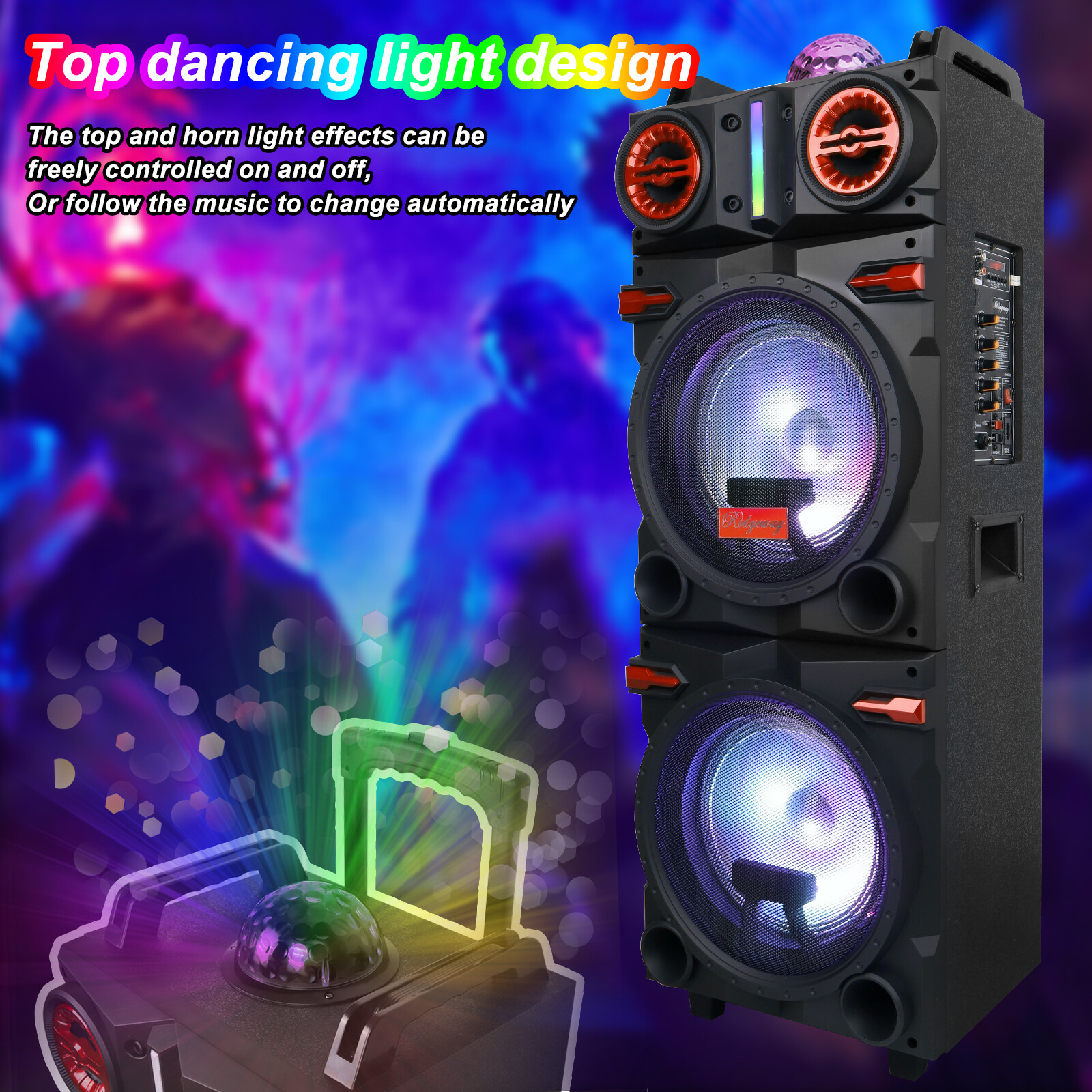 Dual 10-inch Bluetooth Speakers With Remote Ambient Lights Home Audio Speakers Feature: 10'' * 2 High power efficiency speaker system; Built-in colorful LED party lights move with music playing; Built-in BT-receiver for wireless connection with your BT-enable devices; Memory card & AUX inputs for your non-BT external audio devices. Product deatil: Audio Inputs: Memory Card/BT/FM/AUX Speaker Size: 2 x 10'' woofers + 2 x 1'' Tweeter Output Power: 80W Power Supply: AC110V-240V 50Hz/60Hz Frequency Response: 45Hz-18KHz Sensitivity: 85±2dB Color: Black Product unit N.W.:33.73LBS/15.3KG Master Carton size: 16.54x13.39x43.31inch Master Carton G.W.: 33.73LBS/16.2KG Package include: 1 x Speaker 1 x Wired Mircophone 1 x Remote Control 1 x Audio Cable 1 x Power Cable 1 x Manual Shipping Payment Return and Refund Policy Feedback Help - Customer Support - Contac Shipping FREE SAME BUSINESS DAY MONDAY- FRIDAY SHIPPING FROM USA. No shipping on Weekends or US Public Holidays. No responsibility for any custom duty We will ship your order to your PayPal Verified address provided. Please verify your address and make sure that it is your current address before making your payment. Any address change requests after your payment CANNOT be guaranteed. Shipping information will be updated when available. All of our products can be shipped internationally. To confirm the shipping rates to your country please refer to eBay's Shipping Tab above. Any brokerage, customs, and duty fees associated with international shipments are the customer's responsibility and are not included in our shipping fee. A phone number is required for the customs documents. Failure to provide one will result in delays. We do not include an invoice or any advertising materials with our shipments. Payment Immediate payment is required. Shipping will be arranged within 1 business day once payment is cleared. To uphold a shipping speed, your order will be processed almost immediately. If you change your mind after your payment is confirmed, we will do our best to cancel the order, however, we CANNOT guarantee the cancellation. Return and Refund Policy 1. We stand behind our items and offer 30 days warranty . All items are in new and working condition unless specified otherwise elsewhere in the description. 2. All Returns - defective or otherwise - MUST BE PREAUTHORIZED to guarantee refund or exchange. Please contact us to get an authorization and return address. 3. Buyer agrees to pay for the cost of re-shipment for undeliverable or wrong addresses. 4. Buyer is responsible for Return Postage as well as a 20% restocking fee if return/replacement is not a result of our mistake such as wrong item. 5. Replacement or Refund will be made upon receipt of the returned item. Please include tracking number so we can process ASAP. If you do not wish to wait for a replacement, please repurchase the item. 6. ALL REFUNDS will be processed via PayPal. Please double check via PayPal history and transaction for confirmation. PayPal will send it back to whatever you used to pay within 3-5 days. Feedback We strive to provide the best products and services. Your positive feedback 5 stars DSR help us do better. If anything about your transaction did not meet expectations, please CONTACT US and give us the opportunity to make things right. We are always here to help. Help - Customer Support - Contac Please do not hesitate to CONTACT US . You can message 24/7 on eBay for all questions and inquiries. We will get back to you within 1-2 business days at the latest.
