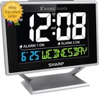 Store New Arrivals Add to Favorite View Feedback Contact Desktop Dual Alarm Clock with Color Display - Atomic Accuracy - Calendar & Day of Week Time/Date Display Description Please DO NOT open a return request or leave negative feedback without asking for help. We are unable to ship to PO box addresses. Kindly provide your physical address. Style Contemporary Number of Items 1 Power Source Corded Electric Country of Origin China Theme Atomic Clock Are Batteries Included No Room Type Bedroom, Living Room, Home Office Product Dimensions 6.14"W x 5.1"H Shape Rectangular Frame Material Plastic Age Range (Description) Adult Alarm Clock Yes Number of Batteries 2 AAA batteries required. Watch Movement Quartz Indoor/Outdoor Usage Indoor Item Weight 1 pounds Special Feature Adjustable Brightness, Atomic, 2 Alarms Display Type Digital Mounting Type Tabletop Color Silver Global Trade Identification Number 00049353002392 Operation Mode Atomic Batteries 2 AAA batteries required. Color Atomic Alarm Clock - Accurate to the Second! The Atomic Clock has a built in receiver that automatically synchronizes itself with the WWVB radio broadcast by the US Government’s National Institute of Standards and Technology (NIST) in Fort Collins, Colorado. The Atomic Clock will always be accurate to within on second as it receives daily WWVB updates. Color Calendar and Day of Week Display - Always know what day of the week it is with a quick glance. The clock displays the calendar and the day of the week. Using the Snooze/Dimmer switch on top of the display, you can easily adjust the display brightness to your liking. EASY TO SET DUAL ALARM - Set alarm for two people, or set one alarm for weekdays and the other for weekend!. Snooze/Dimmer Switch is simple to use and on top of the display. BATTERY BACK-UP - There is a "No Worry" battery back-up option (requires 2 x AAA battery, sold separately), that will allow the alarm to go off, even if the power goes out. The battery back-up stores the time and alarm settings if the power is interrupted. During battery back-up the clock’s display will not be lit. Once power is restored, the display will re-light. ALWAYS ON DISPLAY – Display is always illuminated. You can use the Snooze/Dimmer switch on top of the display, to easily adjust the display brightness to your liking. NOTE: The screen will go dark while the clock is setting and searching for the Atomic Signal. Once signal is located, the screen will always be illuminated. Product Description The Sharp (SPC569) Color Atomic Clock has a built-in receiver that automatically synchronizes itself with the WWVB radio broadcast by the US Government’s National Institute of Standards and Technology (NIST) in Fort Collins, Colorado. The Atomic Clock will always be accurate to within on second as it receives daily WWVB updates. The Sharp (SPC569) Color Calendar and Day of Week Display - Always know what day of the week it is with a quick glance. The clock displays the calendar and the day of the week. Using the Snooze/Dimmer switch on top of the display, you can easily adjust the display brightness to your liking. Easy to Read Color Display - Easy to Use - Atomic Accuracy Color Calendar and Day of Week Display - Always know what day of the week it is with a quick glance. The clock displays the calendar and the day of the week. Using the Snooze/Dimmer switch on top of the display, you can easily adjust the display brightness to your liking. Never Needs Setting -Easy to Read Color Display with Date and Day of the Week Display - The Sharp Color Atomic Wall Clock has a built in receiver that automatically synchronizes itself with the WWVB radio broadcast by the US Government ‘s National Institute of Standards and Technology (NIST) in Fort Collins, Colorado. The Sharp Atomic Clock will always be accurate to within one second as it receives daily WWVB updates. - Calendar and Day of Week ColorDisplay - Always know what day of the week it is with a quick glance. The clock displays the calendar and the day of the week. - 3-Step Dimmer Control for Variable Backlight Control allows you to illuminate the display to your desired brightness. Sharp (SPC569) - East to Read Color Backlit Display Always know what day of the week it is with a quick glance. The clock displays the calendar and the day of the week. Using the Snooze/Dimmer switch on top of the display, you can easily adjust the display brightness to your liking. Simple Easy to Use Controls Clean, elegant design that will fit into any decor. Controls are easy to use and are on the back of the clock to give a clean simple look to any room. Perfect Size for Bedroom, Office , or Living Room Perfect size clock will fit almost anywhere , but is still easy to see and use with the elegant color display. SHARP - A Name You Can Trust. Sharp has been making quality alarm clocks for over 25 years and is the largest suppler of Retail Alarm Clocks in the United States with over 61,000,000 sold. Millions trust us with helping them start their day and staying on track. ABOUT US We offer the best prices around on high quality products. Our E-store includes media such as books, movies, music and games while offering electronics, toys, sporting apparel, clothing, tools, general home, garden items and more. SHIPPING We are always working hard to ensure your package arrives as soon as possible. Please understand that some factors like weather, high postal traffic, and the performance of shipping companies are outside of our control. We offer free shipping to the lower 48 states and ship within 2 business days of payment, usually sooner. We do not accept P.O. Boxes. Please provide a physical address. For shipping outside of the continental USA, we only use eBay's Global Shipping Program.The item is shipped to KY and then sent to the rest of the world. International customers are responsible for all duties and taxes. Continue to check out in order to calculate costs for shipping the item to your country