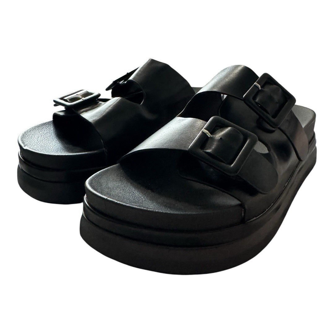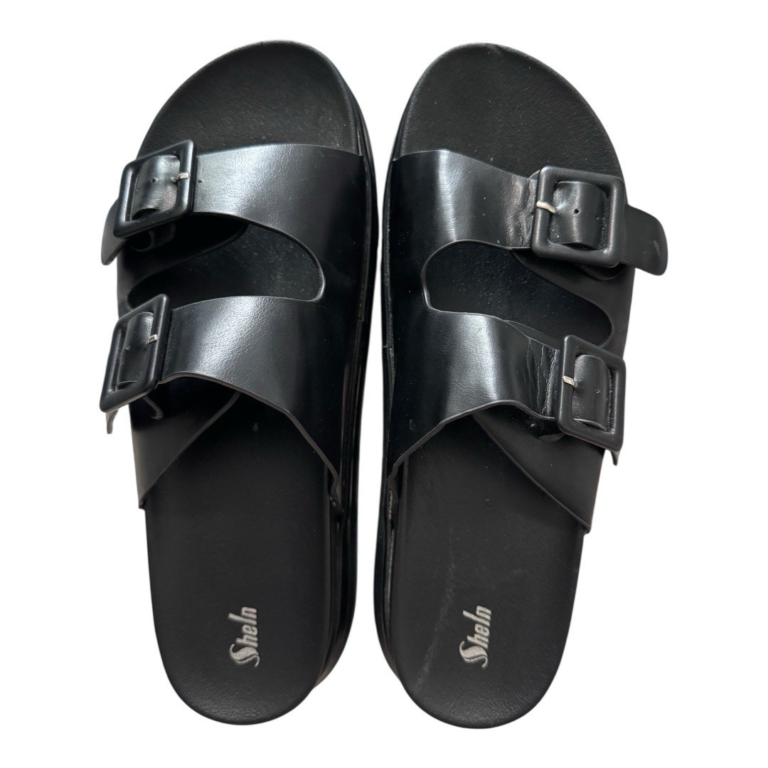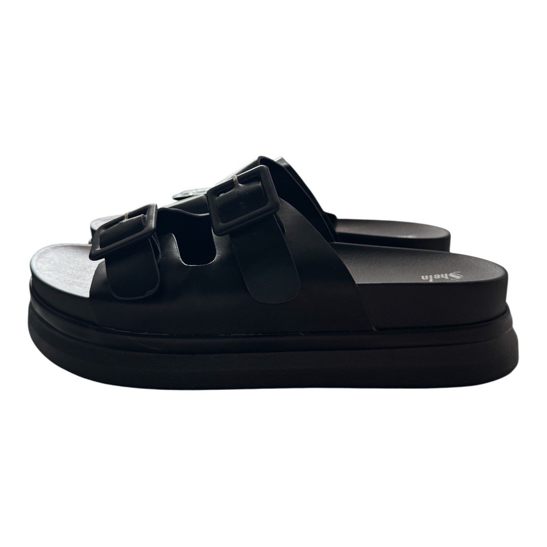 Shein Dual Double Buckle Open Toe Platform Bottom slip on sandals adjustable wide. Black size 10 wide with adjustable buckle straps. Like new, only worn 2-3 times. Pretty comfortable. Mid heel platform lugged sole sandals Strappy buckles adjustable comfy open toe plus size wide church work school casual weekend summer spring