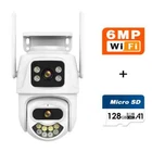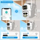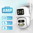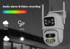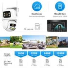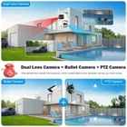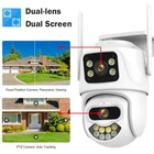 Feature : - Dual lens camera. Top Lens is 3.6MM; Bottom Lens is 3.6MM - Dual-lens dual-sensor dual-screen, 360°wide-angle Viewing + Long Distance Viewing to achieve clear monitoring from far and near; - Dual light source design, built-in infrared light + white light, night vision infrared and night vision full color can be set; - Pan Tilt Move: Bottom Lens: Horizontal: 270 degree; Vertical: 90 degree. - 2.4G WIFI + RJ45 network port for Internet access; -The camera connects to the app through Bluetooth, making it convenient and fast - Support TF storage (up to 128G)and cloud storage (need pay in iCSee app); - Two-way voice intercom, two-way video synchronous recording and playback - Humanoid detection Smart Alert: Motion Triggered with Alarm, APP Push notifications and Alarm recording - Auto Tracking: When ip camera detects object moving, it will auto move follow the object. -Smart Phone APP :: "iCSEE -Support ONVIF and NVR Packing List: 1x PTZ Camera 1x User Manual 1x Power Supply 1x Screws Bag 6MP 8MP comparison We have two pixel options, 6MP and 8MP, to purchase according to our own needs 6MP cversion: Means that the single lens is 2MP, so the dual-lens is 3MP+3MP=6MP. 8MP version: Means that the single lens is 4MP, so the dual-lens is 4MP+4MP=8MP. 270° Pan & 90° Tilt Rotate Due to the horizontal 270° and the vertical 90 °, you can remotely control the wifi outdoor camera to view every corner via your mobile phone. Dual Lens and Dual Screen The camera has two lenses, the upper lens is fixed, and the lower lens can rotate, perfectly achieving one camera to monitor two directions. In the APP, dual screen display of monitoring images AI Auto Tracking As long as the human body appears within the monitoring range of the camera, the camera will automatically detect the human body and monitor its movement Smoothly Two Way Audio Built in microphone and speaker, supporting real-time video, allowing you to have conversations and conversations with people in front of the camera no matter where you are Smart Night Vision Built in white LED and infrared LED, you can choose between color night vision or infrared black and white night vision. Of course, the camera can also be automatically adjusted, and when it's dark, it automatically changes to infrared night vision mode. You can also set the camera to automatically turn on the light when a human body is detected at night on the app IP66 Waterproof / Dustproof This camera is equipped with an IP66 shell, which is waterproof, sun proof, and dustproof. Don't be afraid of bad weather. The camera and nightpot are working normally AI Human Detection Alerts Set up a quick way to find human targets, support information push, light tube alarm, and sound alarm, and be able to keep track of the monitoring location information at any time, no matter where you are. Support TF Card Storage and Cloud Storage(Need Pay For) The camera supports up to 128GB TF card local backup and also provides cloud storage service(Need to pay extra cost). 2.4Ghz Wifi Connection(Bluetooth connectivity)& LAN Connection The camera supports direct connection between 2.4GWIFI and network cable. When connecting to the app, you only need to open Bluetooth on your phone to quickly and successfully connect, without the need for scanning codes and eliminating cumbersome steps ICSEE App Remote Access You can get a live broadcast of the capture video anytime, anywhere. Supporting Multiple Users watching live video at the same time via phone APP. Work with Alexa Support Alexa to make your life more intelligent Support ONVIF and NVR Support NVR, multiple cameras displayed on the computer at the same time, no longer worrying about how to monitor multiple cameras, A Variety Of Usage Scenarios The Wifi Connection Can Be Removed From The Traditional Camera Wiring Trouble, Easy To Install To The Location You Want To Install.