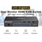 Feature: [Ultra HD 4K@60Hz/2K@144Hz] USB 3.0 Dual Monitor KVM Switch HDMI Support Resolution ππ@ππππ³,. ππ@πππππ³,@ππ πππ³. 3 computers and 2 monitor switches, also supports connecting 2 computers with different resolutions on the input side, e.g. one with 4K@60Hz and the other with 4K@30Hz, 1440P@60Hz3D, 1080P@60Hz or lower. Note: If your device outputs 4K resolution, please use an HDMI 2.0 cable (cable length not exceeding 1.5 metres) and make sure that both your computer and monitor also support 4K. HDMI KVM Switch with 4 USB 3.0 PortsγThe USB 3.0 KVM Switch is equipped with 4 USB 3.0 ports for sharing USB devices, such as mice, keyboards, scanners, printers, flash drives, and other USB devices. The USB 3.0 version ensures a faster and more stable data transfer, and is a great solution to the problem of many USB devices disconnecting during use. The perfect solution for many USB devices that disconnect during use. [Dual monitor kvm switcher supports 2 switching modes] HDMI kvm switcher dual monitor supports physical buttons and wired control. You can switch computers by pressing the buttons on the panel or using the wired remote control.LED lights indicate which computer is active. Note: Keyboard shortcut (hotkey) switching method is not supported. Two display modesγKVM switch dual monitor hdmi support extended display mode or copy display mode, in βmirrorβ mode, the main screen can be copied to the second screen to output two identical screens. In βExtendedβ mode, you can drag the window on the main screen to the second screen to output two different screens. Wide compatibility and easy to useγThis dual-monitor KVM switch is plug-and-play and requires no drivers. Requires each connected computer to have 2 HDMI ports, but there may be many computers, especially laptops, that may not have two 2 HDMI ports, then an adapter is needed, such as USB-C to HDMI, DP to HDMI. γKVM Switch Dual Monitor 3 Computers 2 MonitorsγThis 2-monitor KVM switch allows you to control 3 computers or laptops with just one set of wired or wireless keyboard and mouse, sharing 4 USB 3.0 devices and 2 monitors. Widely used in office, multimedia teaching, conference room and so on. Specification: Product Name: HDMI KVM Switch HDMI version: 2.0 DP version: 1.4 USB Type: USB 3.0 Data Rate: 5Gbps Connection port: HDMI-A/standard DP interface HDMI cable: <1.5m (resolution:4K@60Hz 2K@144Hz) DP cable: <1.5m (resolution:4K@60Hz 2K@120Hz) Operating power supply: 12V Plug specification: EU/US/UK (optional) Product size: 15.8*6.6*2.95cm Product material: aluminium alloy Product colour: black Package List: 1*KVM switch 3*USB cable 2*HDMI cable 1*Wired controller 1*User Manual 1*Power Adapter Attention: 1. Due to manual measurement, the product size will have 1-2cm error! 2. Due to the lighting effect and shooting angle, there may be some colour difference, please understand! On Jul 22, 2024 at 00:45:30 PDT, seller added the following information: