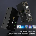 【KVM Switch Dual Monitor HDMI 2 Port】This Dual Monitor KVM switcher 2 monitors 2 computers allow you to control 2 PCs by only set of keyboard & ,share 4 USB devices and 2 monitors(Extend display mode or copy display mode). Please note that the extended mode can output different screens, and the copy mode can output identical screens. 【Ultra HD 4K@ 60Hz】2 port HDMI KVM switch dual monitor support input of different resolutions, such as 4K60Hz, 1440P60HZ, 3D and 1080P60Hz or lower resolution. Note: if you need a 4K resolution , please use version 2.0 HDMI cable and make sure your computers and monitors support 4K ! 【KVM Switch with 4 USB 2.0 Ports】Dual monitors HDMI USB switcher with standard USB 2.0 port which can recognize wired/wireless keyboard USB hard drive printer or other USB devices.please note that this KVM switch not with HD Webcam and macbook well,so we don't recomand connect to our product. 【Great Compatibility & 2 Switching Mode】KVM switch HDMI driver-free for Windows 10/8/8.1/7/Vista/XP and Mac OS,Linux.plug and play,no external power required. you can press the button on the panel or use the desktop controller(included in the package) to switch the computers.LED indicate the active computer. 【USB HDMI KVM With Wide Compatibility】Dual Monitor KVM support many kinds of input devices,such as PC,Laptop,Apple TV,PS3/PS4,Xbox.it is widely applied for Office,Multimedia Teaching,Meeting Room,etc. 【Note】This dual monitor KVM switch requires each computer to have 2 HDMI output ports and supports extended display, Support DVI/VGA/DP/USB C to HDMI converter. If your computer only supports single display, then this product cannot help you get dual display function. After connecting the computers and the monitors through KVM, you need to set the screen output mode on the computer (press Windows+P) and select the output mode in the pop-up window on the screen. Otherwise, only of the connected monitors has an image.