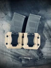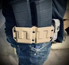 Dual Magazine Carrier/Holster Lead Time/Ships in 1-10 Business Days Weapon System: Type: Modern Hunting Rifle For: Cal. 556-223 Handing/Draw: Ambidextrous: Right/Left Magazine Size: Compatibility: 10/20/30 Color: FDE - (Shown) Belt Clip Range: 1.5"-1.75" Use: Designed and Ideal for a Lightweight, Fast, Clip on EDC Support Option. ***Made in USA***