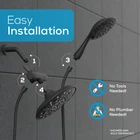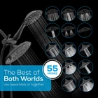 2 IN 1 RAINFALL SHOWER HEAD COMBO: Seamlessly switch between the rain shower head and the detachable shower head, or a combination of both! The wide-angle, high-pressure spray will drench you from head to toe in an invigorating rain shower 55 SPRAY SETTINGS: The double shower head has up to 55 combined functions to choose from. Relaxing Rain, Soft Mist & Pulsating Massage, are all designed to deliver the ultimate spa retreat at home SHOWER HEADS WITH HANDHELD SPRAY COMBO: 's included multifunctional handheld shower head has dual power jet sprays that are perfect for efficiently cleaning your shower or bathing kids and pets EASY TO INSTALL: This high pressure showerhead with handheld sprayer includes a diverter with a built-in bracket, a stainless steel hose, gaskets, restrictors, plumber's tape & easy-to-follow instructions PREMIUM QUALITY: Constructed from durable ABS material to create a rust-resistant & leak-free rain shower head with handheld spray. Each shower head combo set is backed by a Limited .