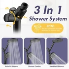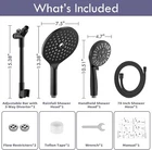 Dual Shower Heads with Handheld Spray, " Rainfall Shower Head with Handheld Combo, High Pressure Double Shower Heads with Handheld Spray, 9 Modes Hand Showerhead with 78" Hose Matte Black ☆【LARGE RAINFALL SHOWER HEAD】The rainfall showerhead ensures that the water flow from shower covers your entire body, providing a soothing rainfall effect and immersing you in a spa-like showering experience. The silicone spout of the double shower heads with handheld spray prevents clogging caused by lime and hard water, while providing an even spray. Additionally, you can gently wipe the nozzle to keep the rain shower head with handheld spray clean and unobstructed. ☆【FLEXIBLE & ADJUSTABLE】The bendable bar is very flexible and durable, and its unique design allows you to easily adjust the angle and height of the hand shower. In addition, the solid brass ball joint can be swivelled 360° to freely adjust the angle of the rain setting shower heads. The dual shower head with handheld is especially convenient for children, disabled and elderly, and can meet the shower needs of different people. ☆【3-WAY WATER DIVERTER】By rotating the side handle of the diverter, you can easily switch between the hand shower and the rainfall shower or turn on both showerheads simultaneously. This shower head combo set can provide a high-pressure water flow, creating various combinations of water discharges. The shower head rainfall with handheld spray will give you a different shower enjoyment and relieve the stress of the day. ☆【9 MODES HAND SHOWER HEAD】The " hand shower head offers 9 spray modes, including massage, trickle, mist, and others. You can choose the desired mode according to your preferences. This handheld shower also has a jet mode that quickly eliminates stubborn stains in the bathroom, such as soap scum and hair from the floor. This waterfall shower head with handheld comes with an extra long 78" hose that makes it easy to get into hard-to-reach areas and greatly extends the range of use. ☆【EASY TO INSTALL】The universal G1/2" threads can be quickly attached to any standard shower arm or pipe. The user manual provides detailed step-by-step instructions for easy installation without a plumber. When connecting the shower arm to the shower head, it is important to take care not to mix up the nuts, which can lead to problems such as leaks or incorrect direction. Elevating Your Everyday Bathroom Experience!