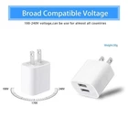 Product Compatibility: Compatible with all USB cable charging devices.Such as iPhone11/X/8/7/7 plus/6/6 plus 5S/5/4S, Pad Pro/Mini/Air,Samsung S8/S7/S6/S5/S4,Note 4/Note 3,Google Nexus,HTC.LG Nokia.Motorola. Reliable Quality: Intelligent circuit design,can protects against short circuiting, over-heating, over-currents, and over-charging, Charging stops when battery is full Easy to install: this adapter allows charging at home , in the office,or in the hotel.Simply connect with your phone USB cable,and plug into a electrical socket,then it working Product characteristics: Wide range 100 - 240V AC input Available in all country,lightweight perfect for travelling,and 2A high charging speed Specification: USB Output: Dual USB Port Input: AC100-240V 50/60Hz Output: DC 5V 2A Color: white Package Included: 1/2/3/5/10/20/50/100/200/500/1000 x Wall Charger Adapter Tips: -Charging speed also concern with battery capacity,it charging faster for small battery than larger one. -it is normal condition for the wall charger get a little hot when it working