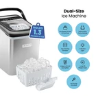 The Dual-Size Ice Machine is your ice making countertop companion. With two ice sizes to choose from, you can have ice when and where you want. Display lights indicate when ice-making is complete, when the water to make ice is low, or when the cleaning cycle has been completed. The included ice basket holds 1.3 lb. of ice, and the top viewing window helps you see how much ice is left. The 5 ft. power cord and cooler-style drain plug simplify setup and take down. Plastic serving scoop and removable ice basket included. Purchase includes a 1-year assurance from Chefman by For information on how to use your product, scroll down for a PDF User Guide. 120 Volts/1.7 Amps. RJ56-D1 •Ice Basket Stores 1.3 lb. of Ice •Makes Large or Small Round Ice •Detachable Carry Handle •Indicator Lights •Top Viewing Window •Bottom Drain Outlet •Long 5 ft Power Cord •Plastic Scoop Included. One machine, two sizes: Choose between big bullets or small bullets for the perfect size ice for your beverage. Ice on demand: Make 9 pieces of round ice in 6 minutes! That's faster than your fridge and ensures you’ll never run out of ice mid-party again. Entertaining made easy: Place your portable ice maker near the drink station to ensure your guests have easy access to extra ice when and where they need it. Countertop-friendly: This personal ice maker is small enough to fit on your countertop but large enough to hold 1.3 lb. of round ice. Sleek design: Features a stainless-steel finish and a convenient viewing window to quickly monitor your ice levels. Digital display: Easy to operate with one-touch buttons and digital controls. No more ice trays: Avoid the mess and hassle of filling up drippy ice cube trays. Free up your freezer: Make more space for storage in your freezer by using your ice machine on your counter. Self-cleaning: The built-in self-clean function assures your machine stays in working order without any extra effort. Resources: cETL approved with advanced safety technology for long-lasting durability and a 1-year assurance provided by Chefman. 120V/1.7AMPS. RJ56-D-1