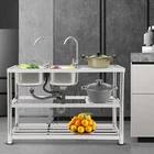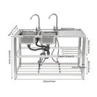Package Included 1*Double-Bowl Sink 2*Faucets 4*Water Inlet Pipes 3*Drainage Pipes 1Pair* Gloves All Accessories for Assembly Dual-bowl Commercial Kitchen Sink Stainless Steel Restaurant Sink Free Standing Description This 201 stainless steel kitchen sink is sturdy and durable. Its modern and simple appearance can fit various decorations, suitable for kitchens, garages, labs, balconies, and so on. It has a solid rectangular structure and strong load-bearing capacity. The open countertop, roomy sink, utility drainage devices, inlet pipes, 360° rotatable faucets, and storage shelve make this product convenient to use. Key Features Sturdy and Durable : 201 Stainless steel material combined with exquisite wire drawing and polishing processes makes the sink resistant to rust and high temperatures, strong and durable. Strong Bearing Capacity : High-quality material, rectangular structure, and thickened square&round pipes make the countertop support up to 220.5 lbs and each shelf support up to 55.1 lbs, so you can rest assured to use it without worrying about collapsing. Convenient Faucets: The two 360° rotatable faucets with cold and hot water inlet pipes and handles for temperature/water flow adjustment allow you to wash at different angles and temperatures, meeting your various demands. User-friendly Design : The right height(31.5in) allows you to say goodbye to bending over to clean dishes. The enlarged drain opening ensures quick drainage to avoid long waiting or blocking. The basket with a lid can keep large residues flowing into the pipe, preventing the sewage pipe from being blocked while making it convenient for storing water. Plenty of Space: Two spacious sinks (13*13*7.1in) can accommodate large bowls or wash dishes, which can meet daily washing needs. The countertop has enough space for daily prepping or chopping. The lower shelves are very convenient for storing cookware, washing equipment, or other kitchen utensils. Complete Set: This complete sink kit includes 2 sinks, 2 faucets, 3 drain pipes, 2 drainage strainers, 4 water inlet pipes, and a series of complete accessories, so you do not need to purchase them separately while ensuring easy installation. Easy to Clean : The rounded corner is hard to hide dirt, together with the smooth surface and simple structure, you can rinse the sink with clean water. Protective Package : To prevent the product from being damaged during transportation, we packed it with foam to protect your products to the maximum extent possible. Customer Service : We aim to provide quality products and services. If you have any problems, please feel free to contact us. We will reply and solve the problem for you as soon as possible. Details Overflow Holes : The design of the high overflow holes prevents water from overflowing due to forgetting to turn off the faucet, and protects a dry floor. Raised Edges : The use of raised edges can significantly prevent overflow and maintain an elegant and streamlined appearance. Seal Ring : It ensures a tight connection and prevents leakage. Application It can be widely used in homes, kitchens, backyards, garages, balconies, laundry rooms, restaurants, hotels, cafes, and other indoor and outdoor places. Specifications Color: Silver Style: Modern Shape: Rectangular Material: 201 Stainless Steel, PVC Surface Treatment: Wire Drawing, Polishing Installation Type: Freestanding Assembly Required: Yes Number of Sinks: 2 Each Sink Size: 33*33*18cm/13*13*7.1in Product Size: 120*45*80cm/47*17.7*31.5in Countertop Length: 40cm/15.7in Tier Spacing: 34cm/13.5in; 30cm/12in Drainage Pipe Size (D* L): 42mm*65cm/1.65*25.59in Water Inlet Pipe Length: 80cm/31.5in Square Tube Thickness: 38mm/1.5in Round Tube Diameter: 48mm/1.89in Countertop Maximum Load Capacity: 100kg/220.5lbs Each Shelf Bearing Capacity: 25kg/55.1lbs Gross Weight: 13.6kg/30lbs Package Size: 125*49.5*33cm/49.2*19.5*13in Package Included 1*Double-Bowl Sink 2*Faucets 4*Water Inlet Pipes 3*Drainage Pipes 1Pair* Gloves All Accessories for Assembly Notes Please note the sinks of this product are on the left. Please check the size carefully before ordering. Please do not scratch its surface with sharp objects for a longer service life. Please allow the slight color difference caused by the shooting light and 1-3 cm error due to manual measurement, and make sure you do not mind before ordering. Payment Delivery details Terms of sales About us Contact us Payment We accept ebay payment 。 Fees such as import duties, taxes are not included in the item price or shipping costs. These charges are the buyer's responsibility. Delivery details Shipping: 2-9 working days to: USA Terms of sales We maintain high standards of excellence and strive for hundred percent customer satisfaction. Feedback is very important to us. We hope that you contact us immediately before you give neutral or negative feedback, so that we can address your concerns. It is impossible to address issues if we do not know about them! About us Your satis faction is our ultimate goal. We work hard to earn your trust and future business. Our certified technicians have tested each item before shipping. The unit comes with 1 year limited warranty on all manufacturing defects. a) If you receive a defective item, you may return it or ask for a discount. Please contact us within 14 days after you receive the package. b) What you returned must be intact and in its original packaging as re? u. Customer is responsible for shipping costs of the returned item. c) We will cover the cost of shipping back t with the shipping rate indicated in the registration page. We will send you a new unit or refund the full payment you paid. Thank you. Contact us Business Hour Business Hour: Monday To Friday: 8:30 AM to 5:00 PM (Beijing China time) Due to time zones, our reply to your questions may not be immediately. But within above working time, we will reply your email within 24 hours. If it's non-workdays, please kindly be patient and wait 