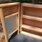 The Dubl Handi Washboard 2 Door Wall Spice Cabinet Shelf is a vintage-inspired spice rack made of wood, measuring 17" x 18" x 5". This wall-mounted cabinet features a rectangular shape with three shelves, perfect for organizing your spice jars in a charming and classic way. Made in the United States, this antique-styled spice rack adds a touch of rustic elegance to your kitchen decor.