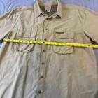 The Ducks Unlimited Men's XXL Beige Cotton Vented Fishing Hunting Button-Up shirt is a stylish and versatile option for casual occasions. Made of breathable cotton knit fabric, this shirt features a collared neckline, short sleeves, and a button closure for a classic look. Perfect for outdoor activities like fishing or hunting, this shirt also includes accents like buttons and a point collar style, making it a functional and fashionable choice for the summer, fall, or spring seasons.