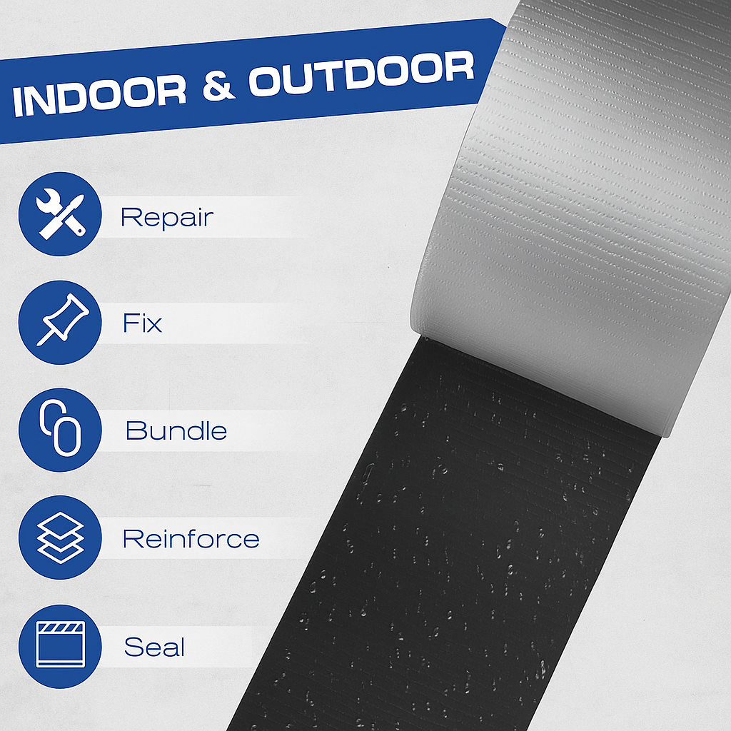 Experience industrial-strength performance with our 42mm x 50m Heavy-Duty Duct Tape (Duck Tape) , engineered for maximum durability, exceptional adhesion, and long-lasting results. Available in Black and Grey , this tape is designed for home, commercial, industrial, automotive, construction, and outdoor use . Perfect for repairs, sealing, fixing, reinforcing, bundling, joining, insulation, crafting, DIY, and emergency maintenance . β Key Features & Benefits π οΈ Heavy-Duty Industrial Grade Strong cloth-reinforced backing for superior toughness Stands up to abrasions, wear, impact and heavy handling Professional quality suitable for contractors, builders, electricians & decorators πͺ Ultra-Strong Adhesive High-tack rubber adhesive bonds tightly to rough, smooth, uneven & porous surfaces Sticks confidently to wood, metal, plastic, brick, cardboard, vinyl, rubber, concrete & fabric Long-lasting adhesion ideal for both permanent & temporary fixes π§οΈ Waterproof & Weather Resistant Suitable for indoor & outdoor applications Performs in moisture, heat, cold, and UV exposure Ideal for garden repairs, outdoor equipment, camping gear & construction sites βοΈ Easy to Use Tear-by-hand convenience Smooth, controlled unwind Flexible & conforms to corners, edges & irregular shapes π¨ Colour Options Black β clean, discreet, professional finish Grey β classic utility shade for universal repairs π Product Specifications Width: 42mm Length: 50m Type: Cloth-reinforced heavy-duty duct tape Finish: Matte, low-glare Adhesive: High-strength rubber-based π§ Applications (Covers All High-Search Use Cases) π Home & DIY Repairing household items Sealing leaking joints & cracks Reinforcing weak areas Securing carpets & rugs Temporary furniture fixes DIY crafting, art projects & decorations π¦ Packaging & Shipping Heavy-duty box sealing Bundling cartons & pallets Reinforcing parcel corners Warehouse & logistics use π Automotive & Mechanical Temporary car body repairs Securing cables & hoses Emergency radiator hose patches Holding loose parts Workshop use & general maintenance π¨ Construction & Trade Masking, sealing & joining materials Securing insulation Bundling timber & pipes Marking & temporary repairs Protection during painting & plastering π² Outdoor, Camping & Emergency Use Tent & tarp repairs Securing gear & equipment Fixing outdoor furniture Quick emergency patches Survival kits & go-bags π Electrical & Cable Management (Not a substitute for electrical tape) Bundling wires & cables Organising cords Securing conduit lines π Creative & Professional Use Stage, film, photography & theatre (gaffer-style usage) School projects & craft builds Prototyping & model-making π§° Why Our Duct Tape Stands Out β Industrial-grade strength β Waterproof backing β Extra-long 50m roll β High-tack performance β Durable cloth weave β Tearable by hand β Weather-resistant adhesive β Suitable for all environments β Professional & home use π¦ Package Includes 1Γ Heavy-Duty Black or Grey Duct Tape Roll β 42mm x 50m (Choose your preferred colour in the variations)