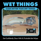 Dude Wipes,Flushable, 8 Pack, 384 Wipes - Fragrance Free Extra-Large BILLIONS OF BUTTS WIPED: We make flushable wipes-billions of 'em. We started this hole revolution against toilet paper from our apartment and now wipe over 1.5 billion butts every year. So join us. You'll have never felt so fresh after that morning coffee EXTRA LARGE FLUSHABLE WIPES: When it comes to flushable wipes, size matters. And we're big. Up to 35% larger than the other guys. Because nobody wants a little wipe after a big burrito FLUSHABLE & 100% PLANT SOURCED FIBERS: Our flushable wipes are made with plastic free and plant sourced fibers, because we care about the planet and your pipes. Unlike baby wipes, DUDE Wipes are sewer and septic-safe and begin to break down when flushed FRAGRANCE FREE & CLEAN FORMULA: Made with 99% water and plant-based ingredients, DUDE wipes are unscented, hypoallergenic, alcohol-free, and paraben-free. Soaked with Aloe Vera and Vitamin E to protect sensitive skin and DUDE regions from irritation IT'S TIME TO QUIT TOILET PAPER: We promise once you try DUDE Wipes you'll never go back. Designed for a clean, more refreshing feeling than toilet paper, our plush wet wipes come in sleek dispenser packs that fit perfectly on your throne 9.38 inches x 9.38 inches x 7.81 inches. Weight: 8.0 lb Unit Count 384 Count Number of Items 8 Product Dimensions 9.38 x 9.38 x 7.81 inches; 8 Pounds Country of Origin USA Material Feature Plastic Free Skin Type All, Combination, Sensitive, Dry, Normal Brand Dude