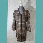 Due Per Due Beige Plaid Checks Floral Embroidered Button Front Coat Women's 12 Chest: 20" Length: 36" Excellent Used Condition: no rips, marks or stains
