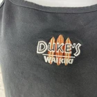Duke’s Waikiki Hawaii Ladies Medium Black Tank Top with Built in Shelf Bra Embroidered Logo City Lights No fading, no tears, no noticeable wear, see photos. Pit to Pit: 15" / 38cm Strap: 7" / 18cm Length: 15" / 38cm