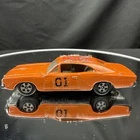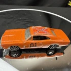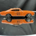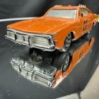 This is a vintage 1:64 scale diecast car from ERTL's American Muscle series. The vehicle make is a 1981 Dodge and it is modeled after the famous General Lee from the Dukes of Hazzard series. The car is orange in color and made of durable diecast material. It was manufactured in 1980 and is a great addition to any collection.