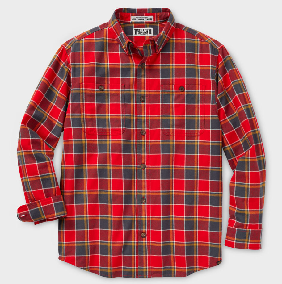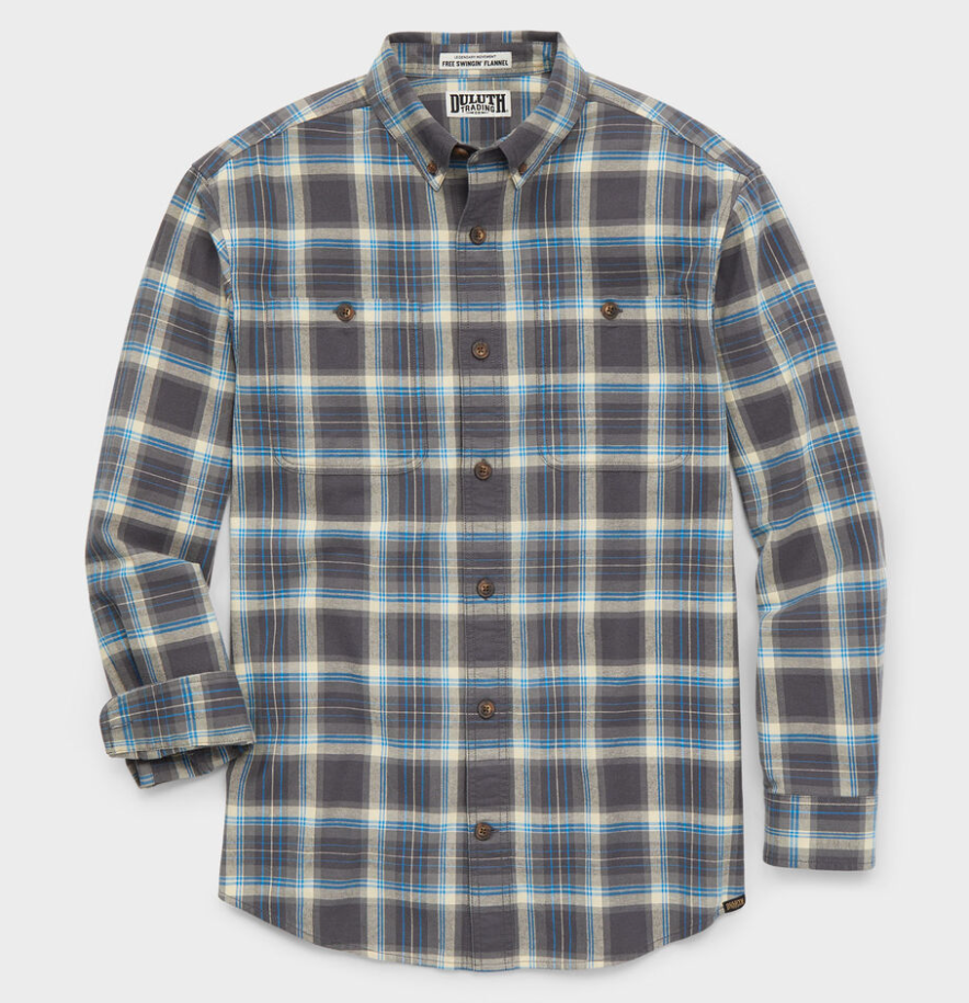 Men's Free Swingin' Flannel Relaxed Fit Shirt Features Classic plaids are crisply yarn-dyed for richness Reach Gussets® and deep shoulder pleats you reach or swing a hammer Button-close front pockets keep stuff secure Button-down collar fits neatly under your sport jacket Front pockets both include inner pockets for a pencil and any extras you may need to carry Back locker loop Fit + Sizing | Customers say true to size Relaxed Fit – Generously sized for ease of movement. Fabrication + Care Hearty 5.6-oz. 100% cotton is brushed twice for extra softness Machine wash Imported