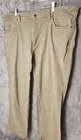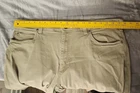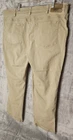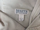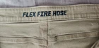 These Duluth Trading Co pants are designed for men in size 40 with a flexible Fire Hose workwear style. Made of a blend of Spandex and Cotton, they feature a solid beige color, zip and button closure, flat front, and 5-pocket design. The pants have a regular fit and straight leg style, suitable for work and utility purposes.