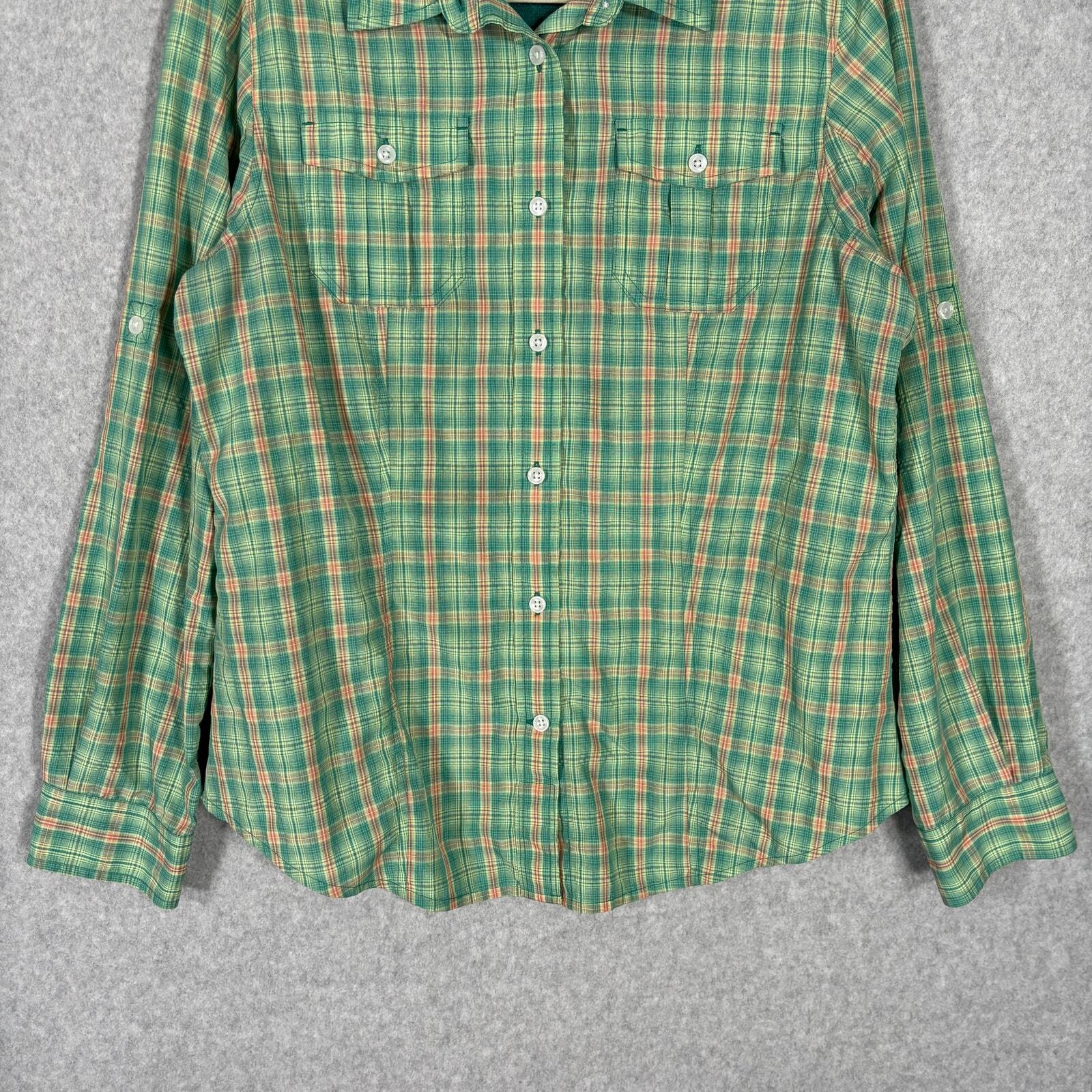 Duluth Trading Co Shirt Womens Medium Green Plaid Vented Fishing Camping Hiking Polyester Nylon Button Pockets Collar GORP Outdoors Long Sleeve EXCELLENT Pre-owned condition: minimal to no signs of wear, no stains or holes SKU 6125 **Please see all pictures for full item condition, details, and approximate measurements** - Ships Same/Next Day, Professional Seller, Offers Welcome, Like or watch for price drops - Item in photos is exact item you will receive - I list new items daily, be sure to browse my store/closet for more items - Bundle pricing and combined shipping available for additional savings - Feel free to send a message