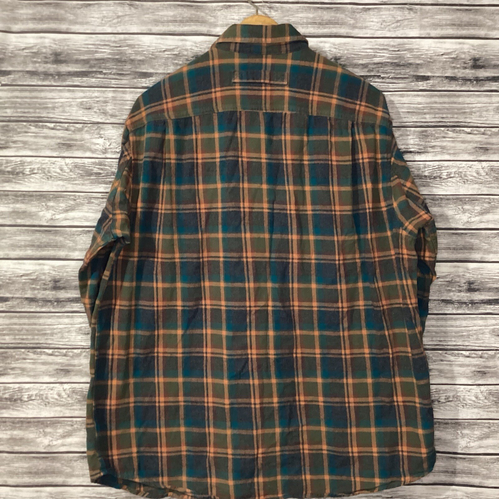 $ 8.15IZOD Mens Large Plaid Flannel Shirt Button Down Blue Orange Cotton Blend Pre-Own