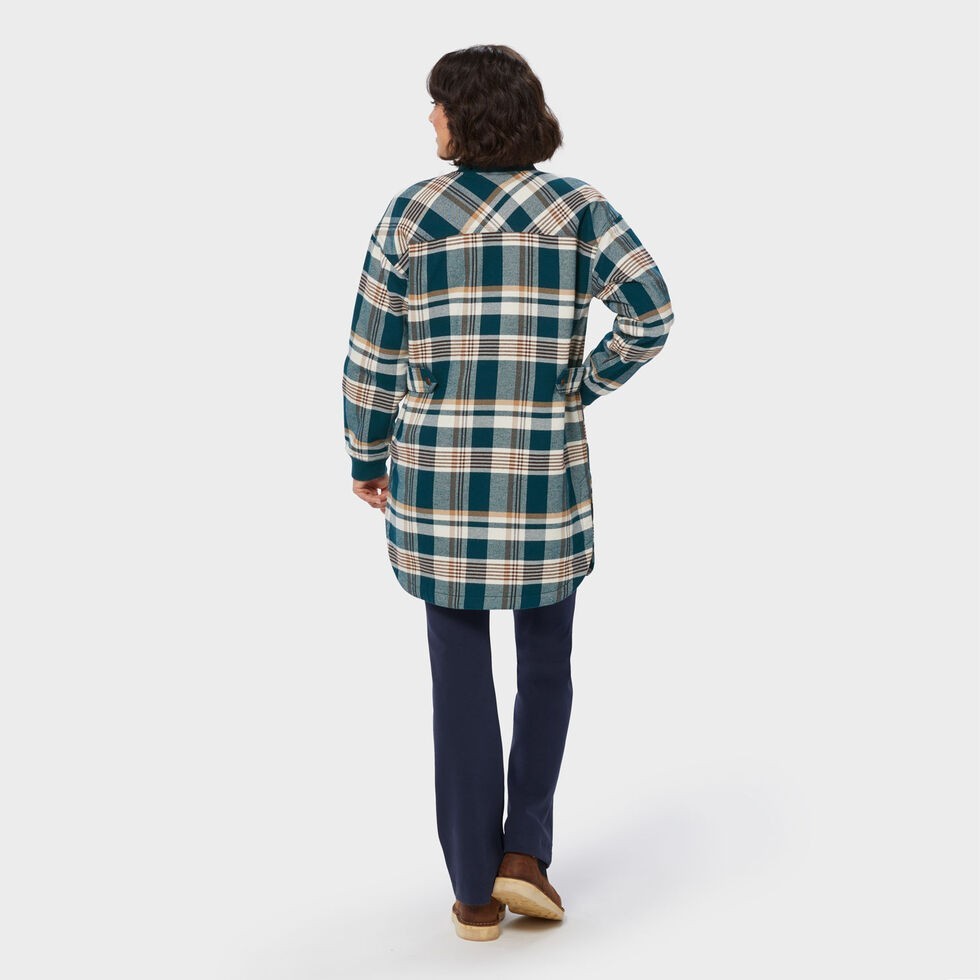 Mythically Soft, Thick and Durable Once upon a time, there was a beloved duster that set Duluth women’s hearts aglow. Now the legend continues with the new and improved Folklore Flannel™ Insulated Duster – all the mythical softness and legendary warmth you adored, trimmed to a universally flattering length. This enchanted layer still delivers that signature double-brushed magic, now with lighter insulation that won’t weigh down your chilly-weather adventures. From morning coffee quests to evening fireside tales, snuggle up in this folklorically fetching classic. Features Thick and double brushed for ultimate softness – the way flannel should be Adjusted length to a more universally flattering fit Lighter insulation keeps you warm without the bulk Bomber-style rib knit collar and cuffs seal out drafts 5 total pockets: 2 chest, 2 waist, 1 interior Shirttail Shammy® shines your specs Adjustable back waist tabs Fabrication + Care Shell: 69% cotton/31% polyester Lining: 100% polyester Filling:100% polyester Machine wash Imported Customers say runs a little big Relaxed fit Women's Tops, Swim Tops, Dresses, Outerwear Sizes TOPS, SWIM TOPS, DRESSES, OUTWEAR XXS XS S M L XL XXL Size 00 0 2 4 6 8 10 12 14 16 18 20 22 24 Bust 31½ 32½ 33½ 34½ 35½ 36½ 37½ 39 40½ 42 43½ 45 46½ 48 Sleeve 29 29¼ 29⅝ 29⅞ 30¼ 30½ 30¾ 31⅛ 31⅜ 31¾ 31⅞ 32 32¼ 32½ Waist 25 26 27 28 29 30 31 32½ 34 35½ 37 38½ 40 41½ Hip 34½ 35½ 36½ 37½ 38½ 39½ 40½ 42 43½ 45 46½ 48 49½ 51 Plus Size Tops 1X 2X 3X 4X Size 16W 18W 20W 22W 24W 26W 28W 30W Bust 45 47 49 51 53 55 57 59 Sleeve 31⅞ 32⅛ 32⅜ 32½ 32¾ 32⅞ 33⅛ 33⅜ Waist 39¼ 41¼ 43½ 45¾ 48 50¼ 52½ 54¾ Hip 47½ 49½ 51½ 53½ 55½ 57½ 59½ 61½ Bust: Relax arms at sides, keep tape parallel to the floor. Measure fullest part of bust. Sleeve: Bend your arm slightly. Measure from center back neck, across your shoulder, down to your elbow, down to your wrist. Waist: Bend torso side to side to find the natural waist. Measure around allowing the tape to sit comfortably. Hips: Stand with feet together, keep tape parallel to the floor. Measure around fullest part of seat.