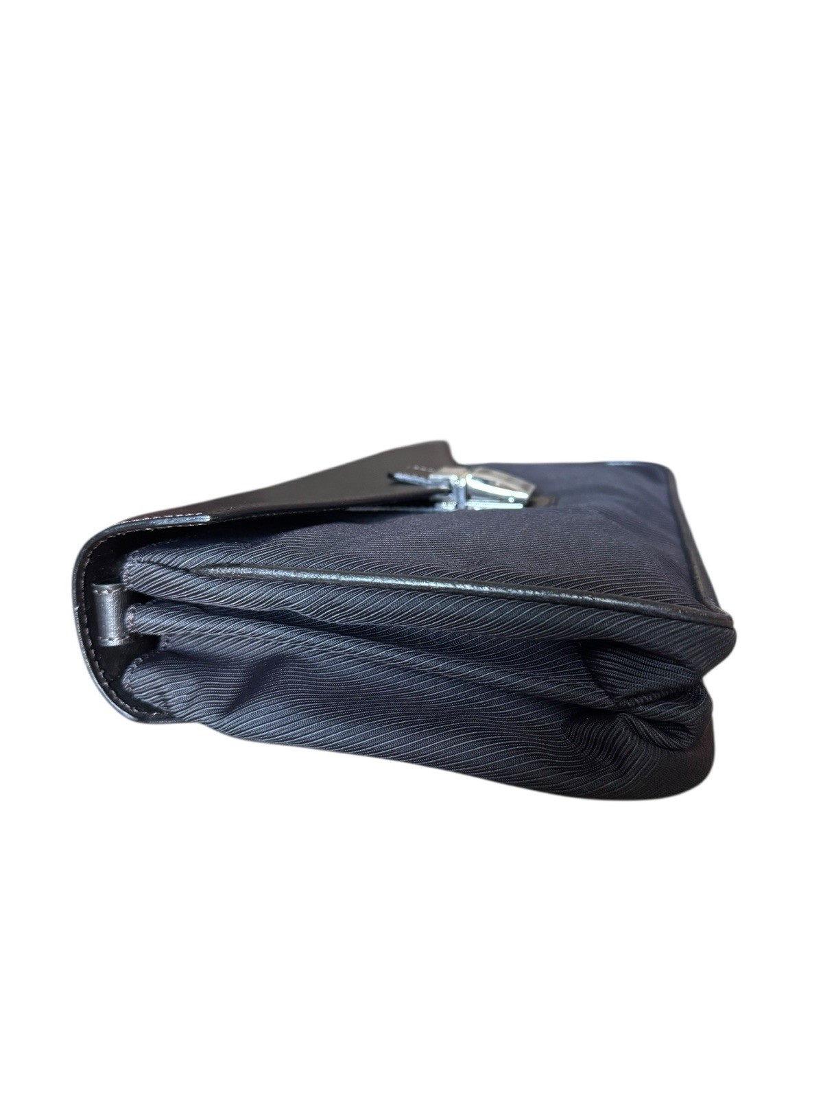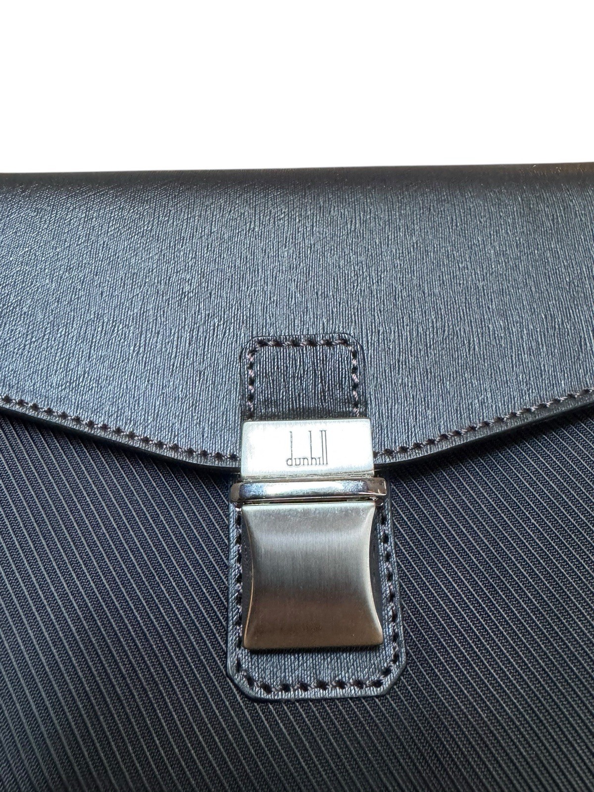 NWOT Brand Dunhill (Alfred Dunhill) Type Clutch bag / Envelope pouch Combination of leather and textured Canvas Color Black with silver-tone hardware Closure Flap closure with a metal clasp lock Two slip pockets Dust bag included .